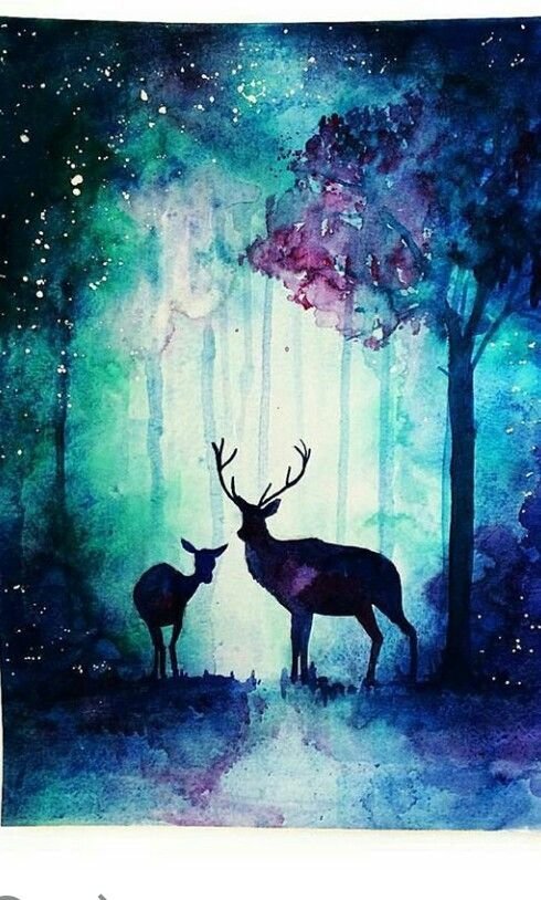 ![Картины с оленями акварелью]()