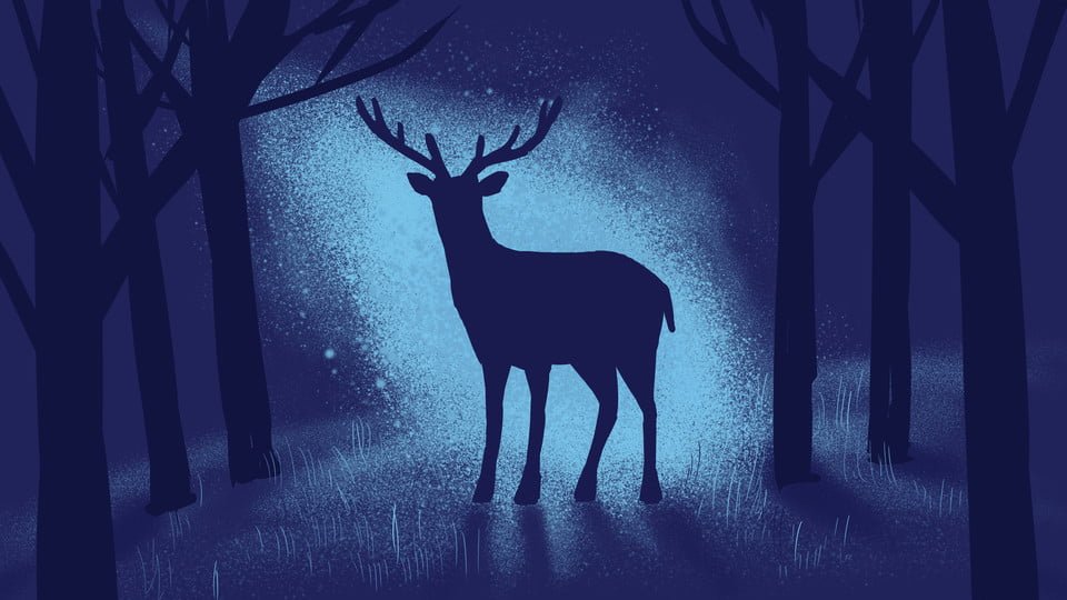 Олень в ночном лесу
