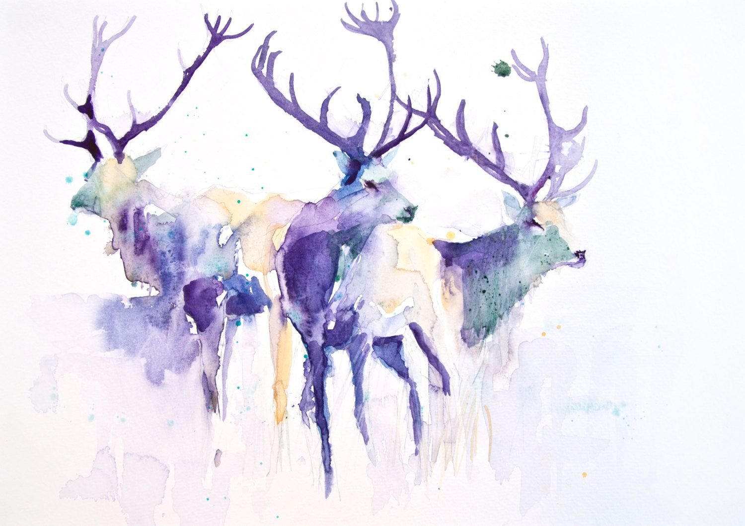 ![Очертание оленя акварелью]()