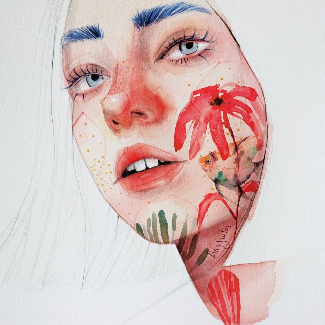 ![Ana Santos акварель портрет]()