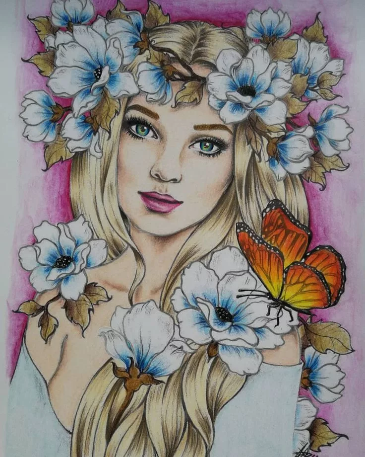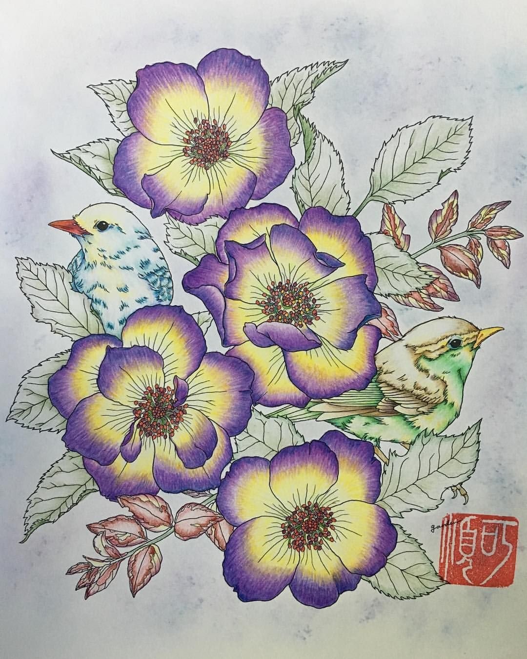 ![Цветы Раскрашенные цветными карандашами]()
