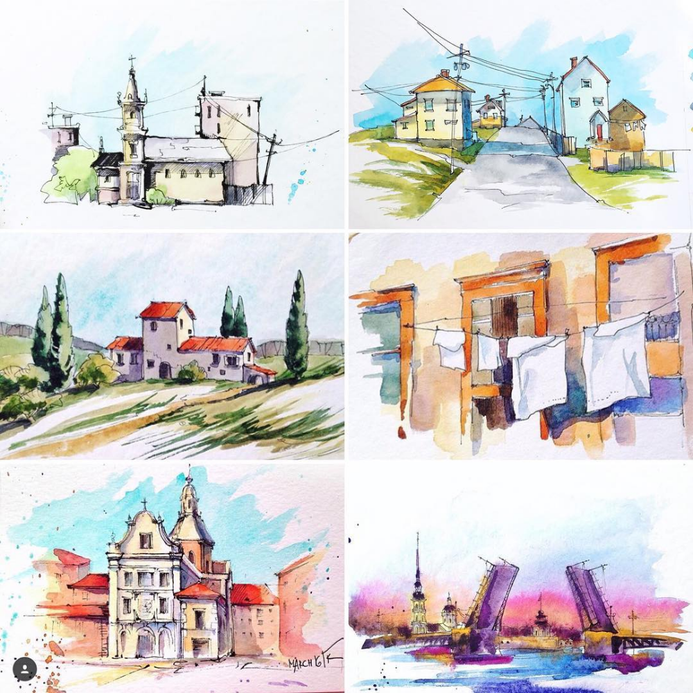 ![Акварельные зарисовки легкие]()