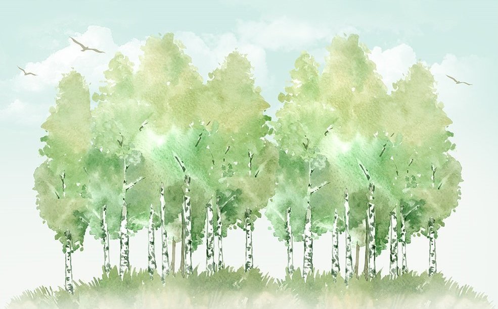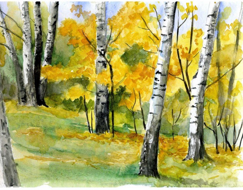 ![Березовая роща акварелью]()