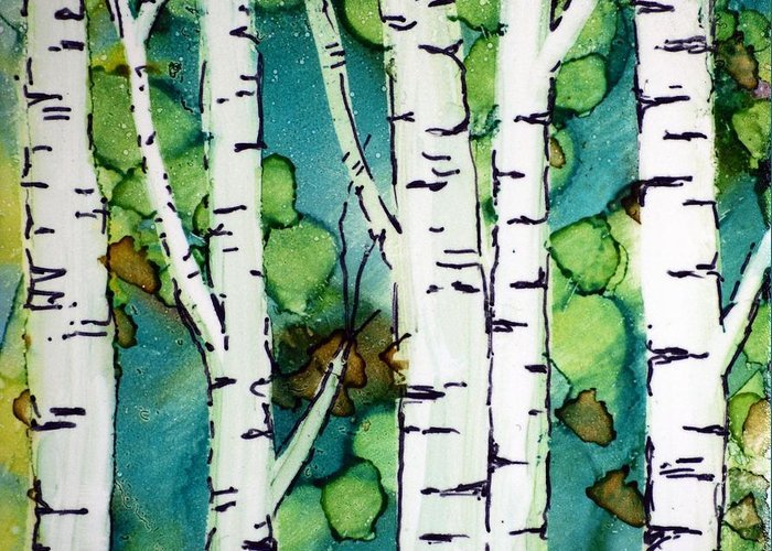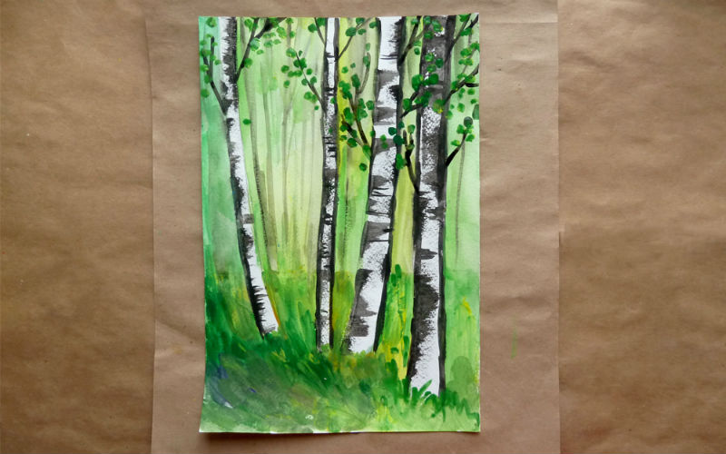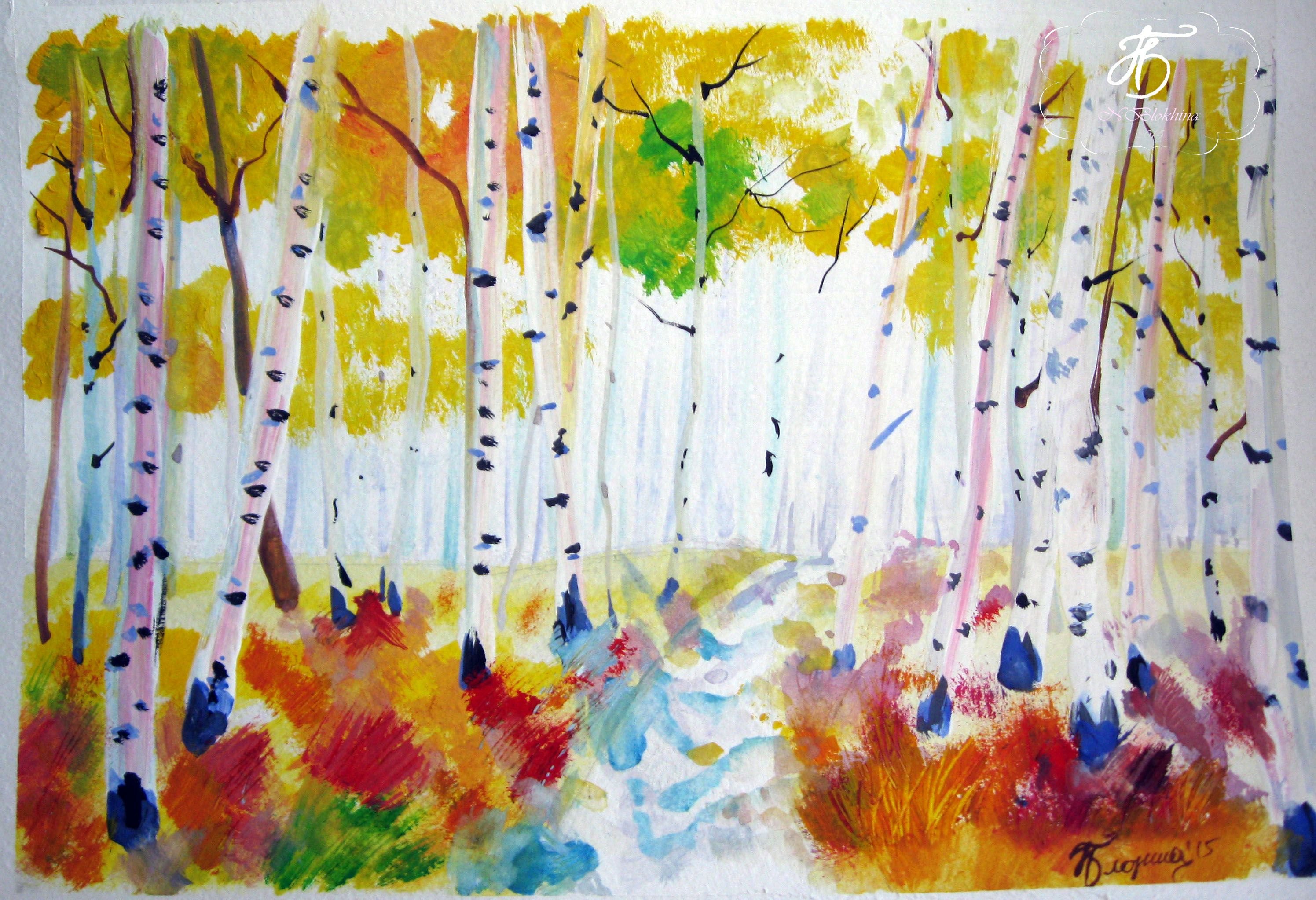 ![Березовый лес гуашью]()