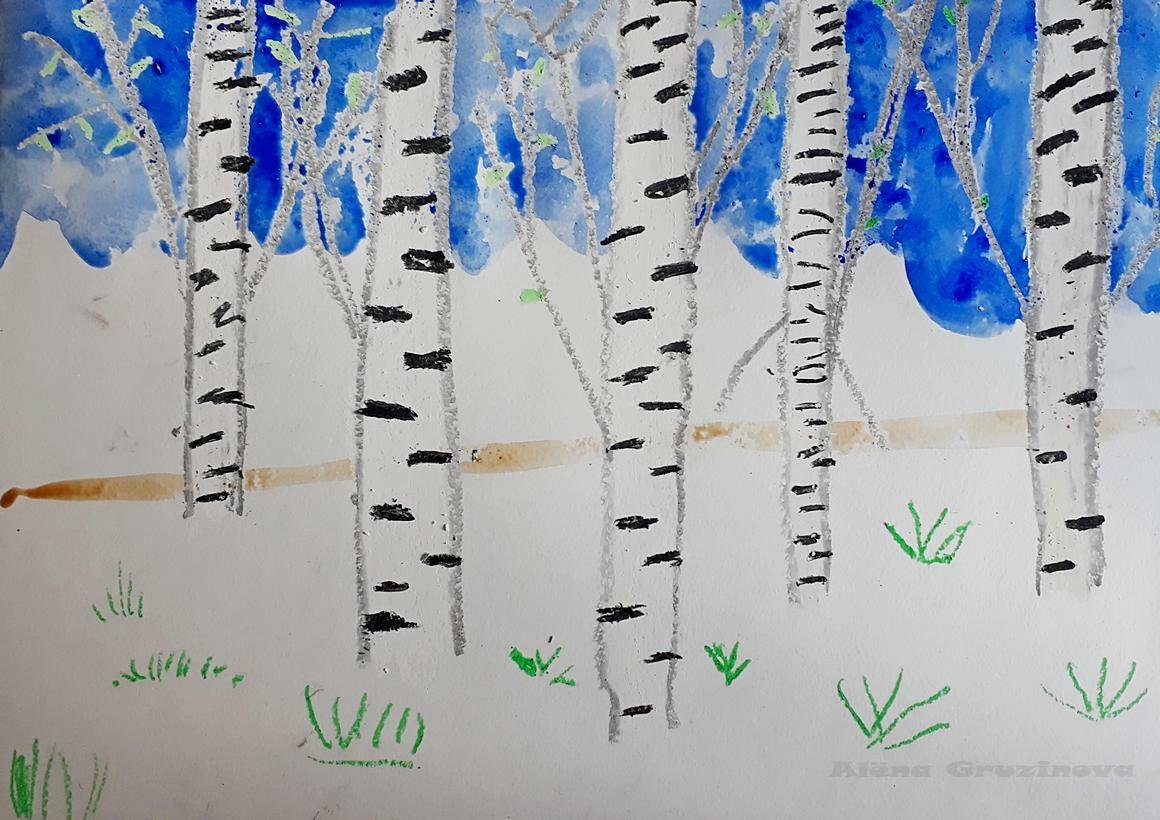 ![Рисование береза свечкой и акварелью]()