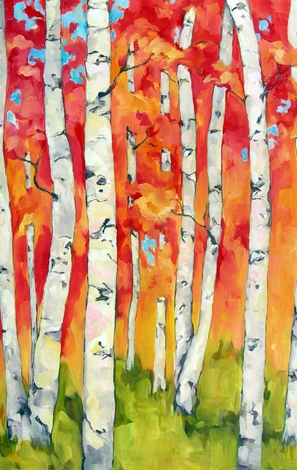 ![Берёзовая роща осенью рисование]()