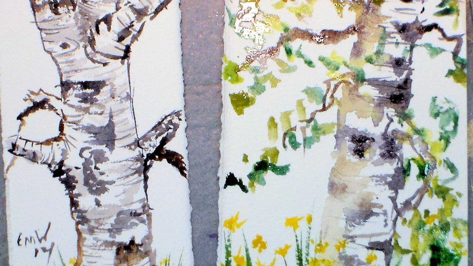 Береза акварелью