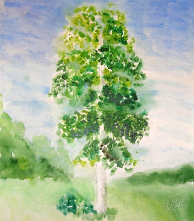![Береза акварелью для детей]()