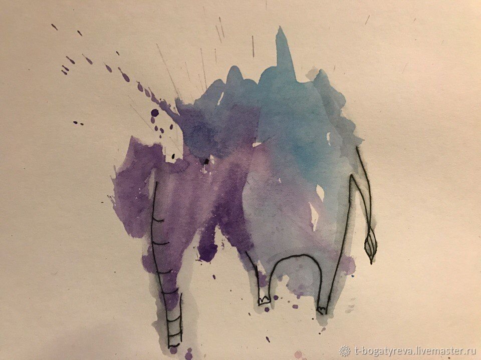 ![Рисунки пятнами акварелью]()