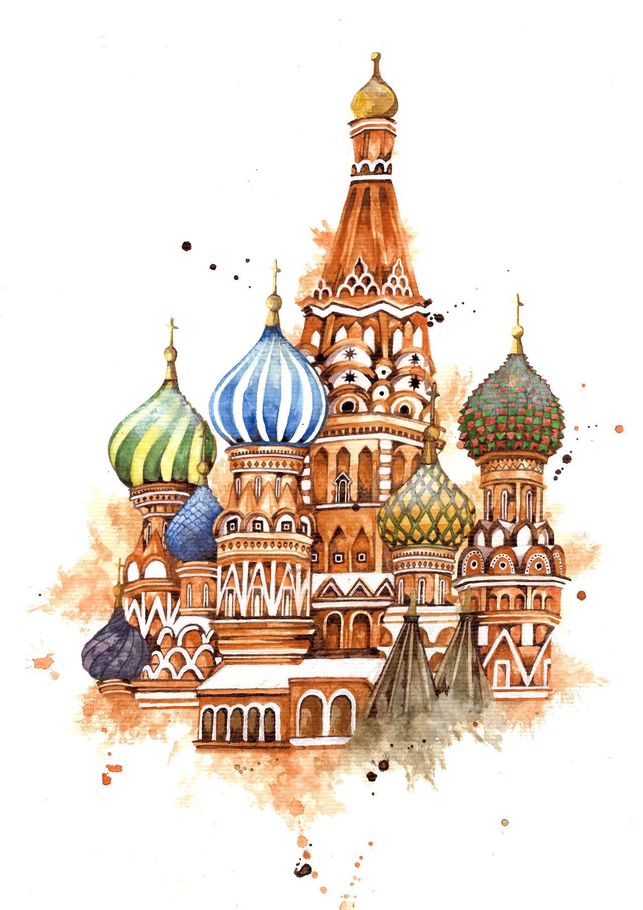 ![Собор Василия Блаженного Москва акварель]()