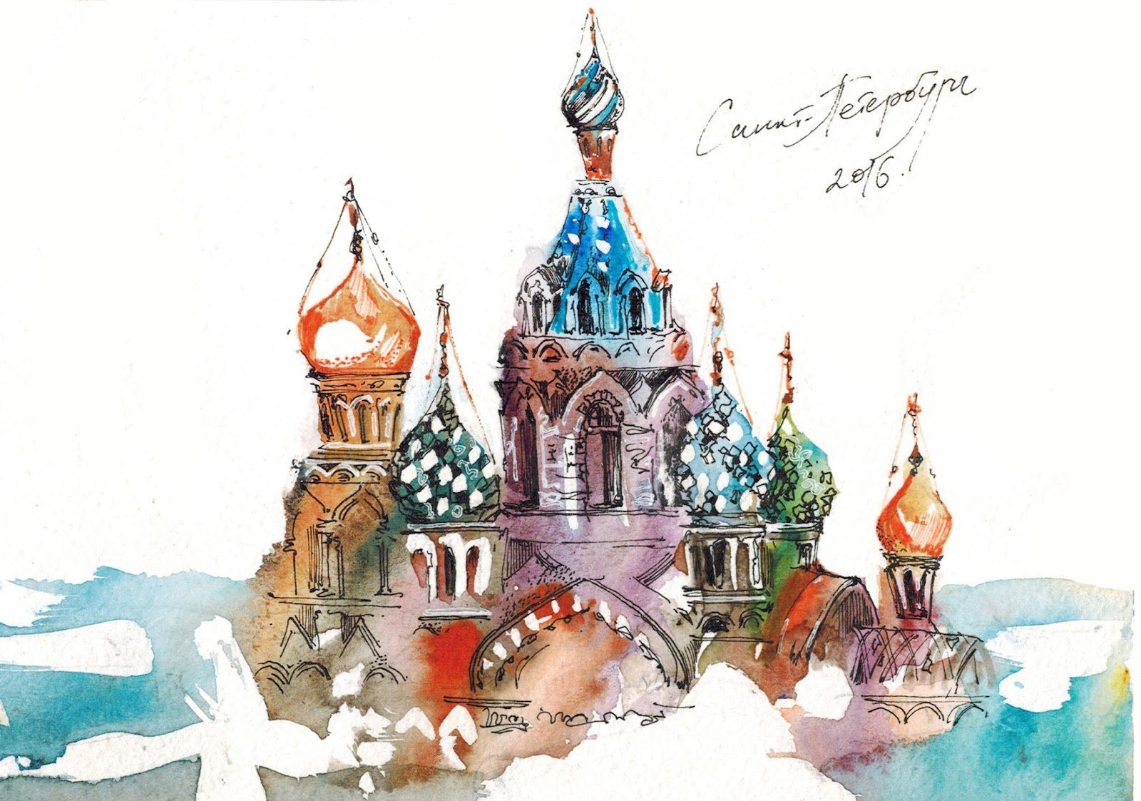 ![Храм Василия Блаженного акварель]()