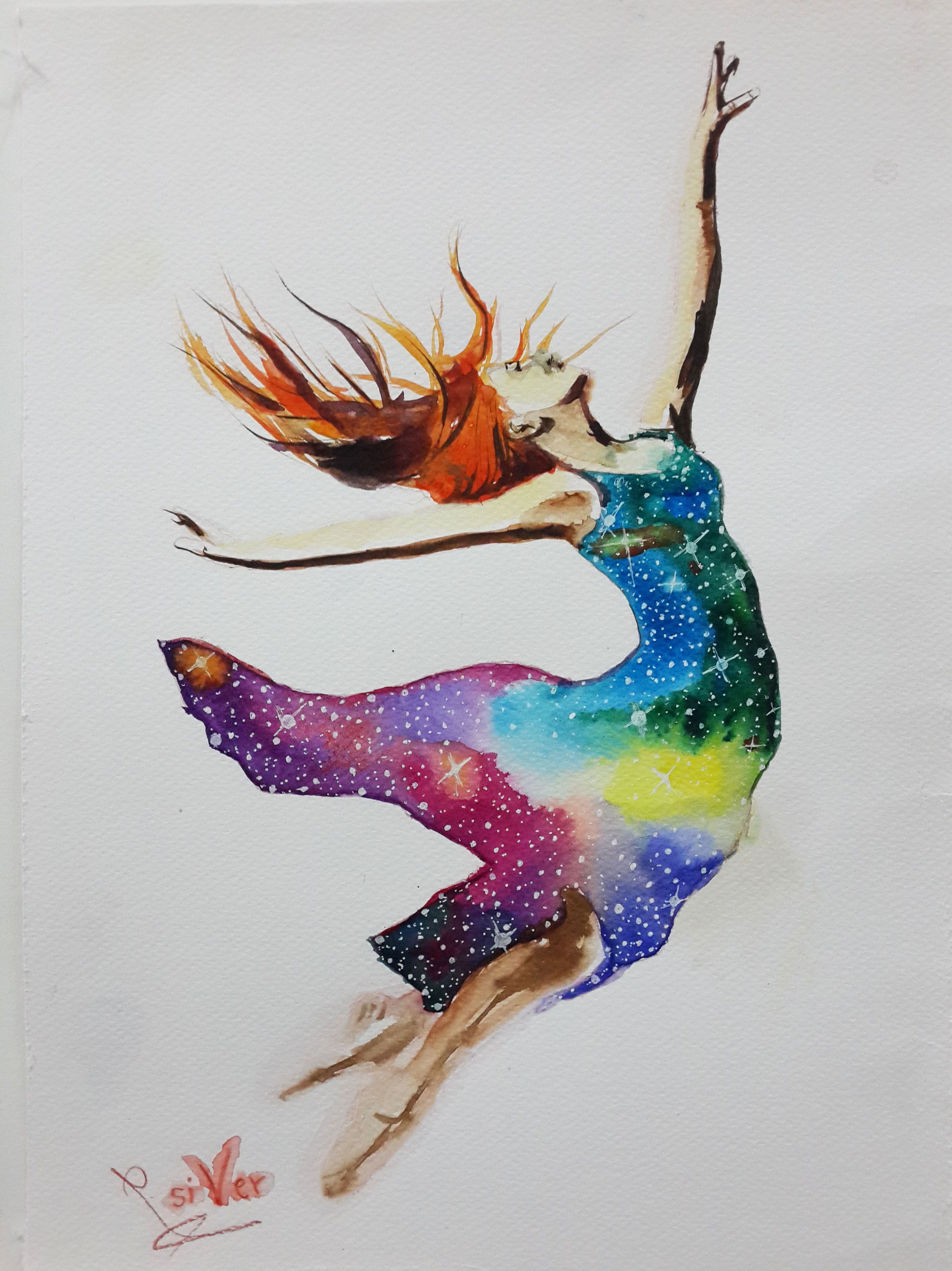 ![Танцующая девушка акварель]()