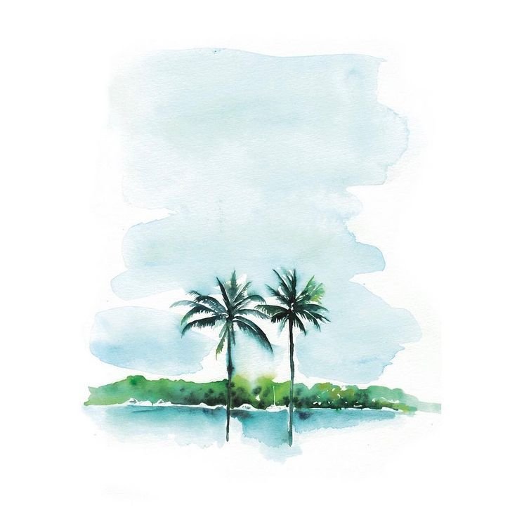 ![Море пальмы акварель]()