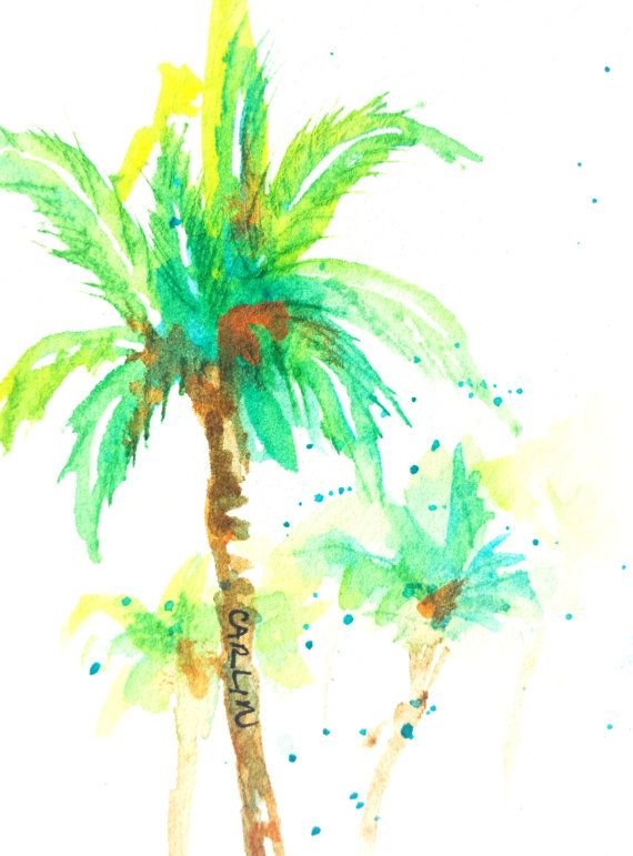 ![Пальмы акварельными красками]()