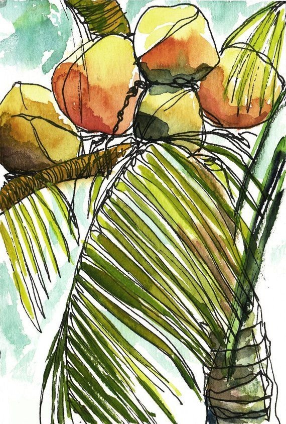 ![Пальма скетч акварельный]()