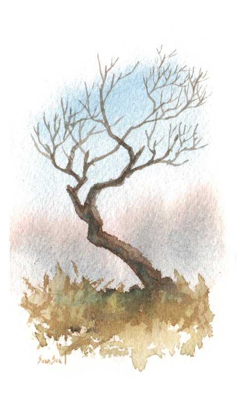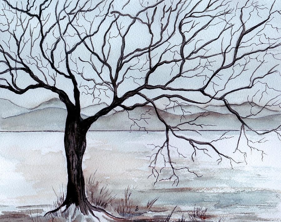 ![Дерево акварелью без листвы]()