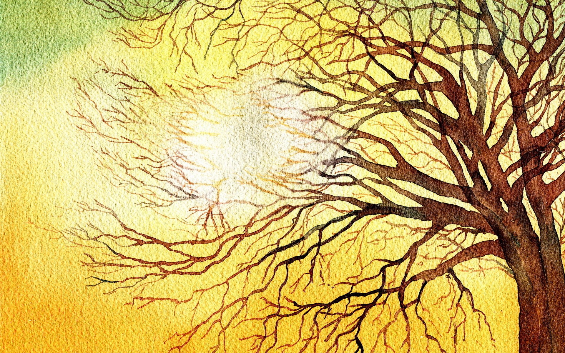Веточки деревьев акварелью