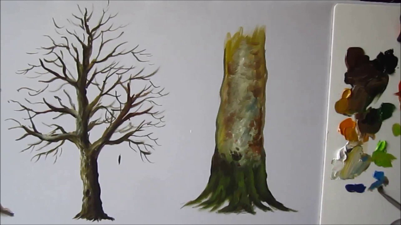 ![Ствол дерева гуашью]()