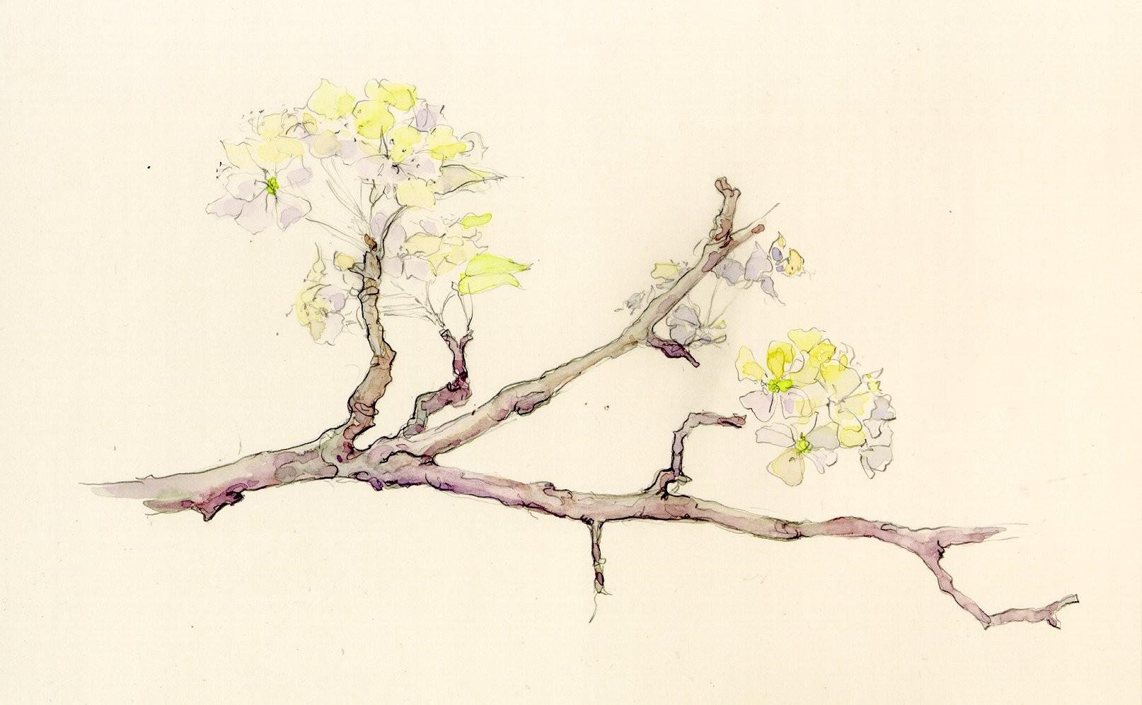 Ветка дерева акварель