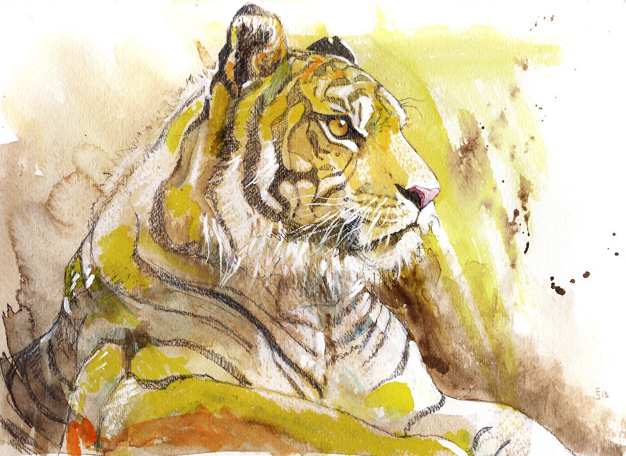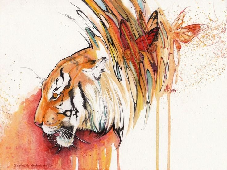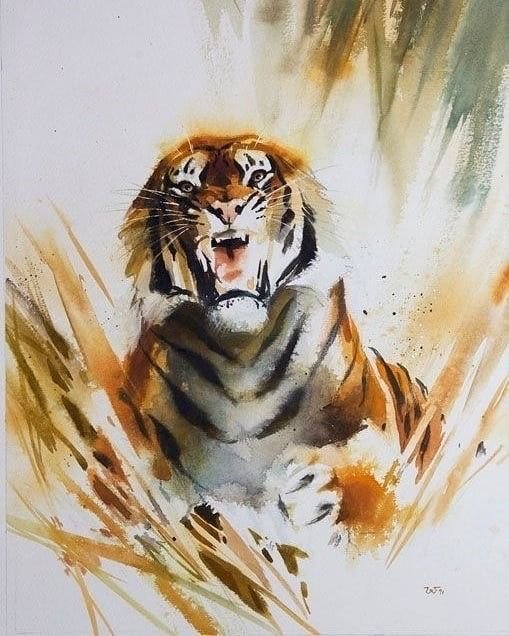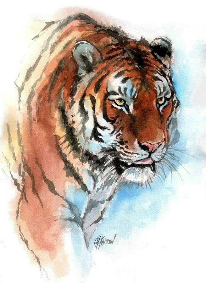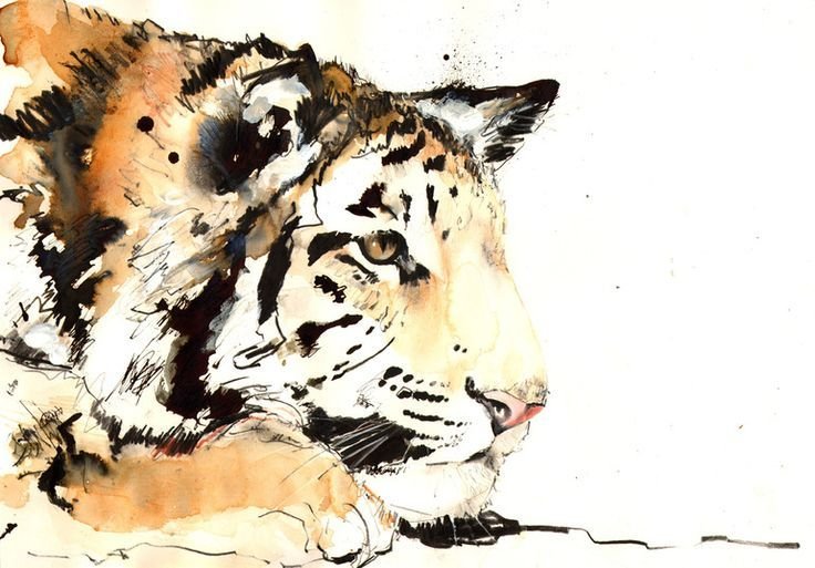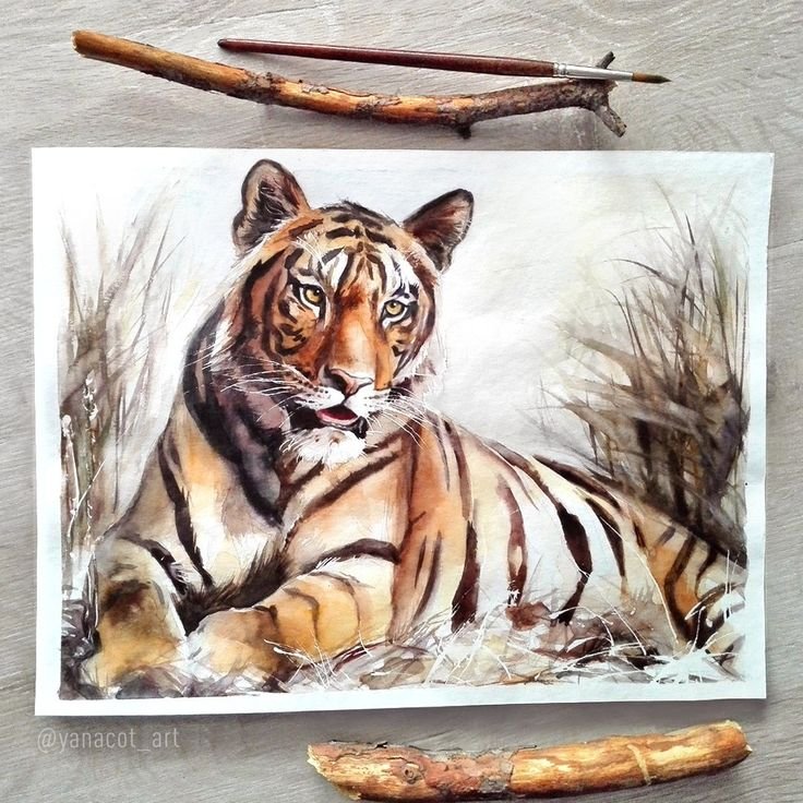 ![Тигр живопись акварель]()