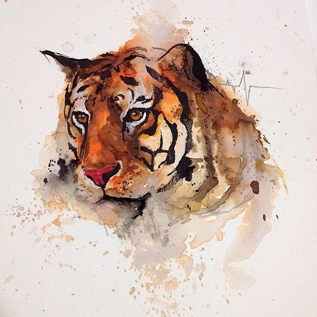 ![Тигр в акварельной технике]()