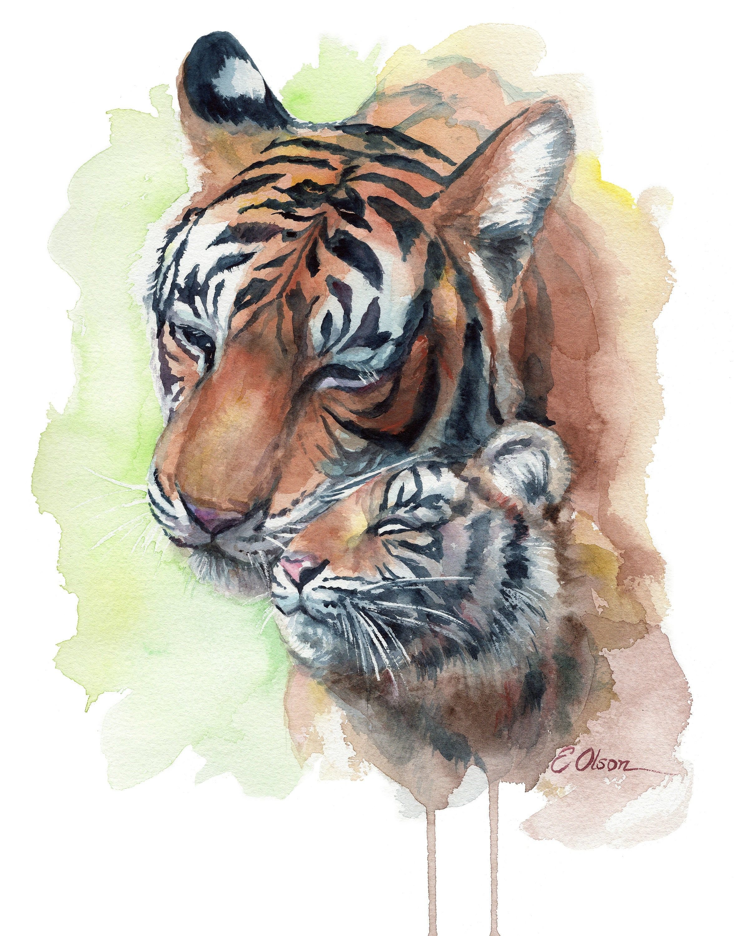 ![Тигренок акварель]()
