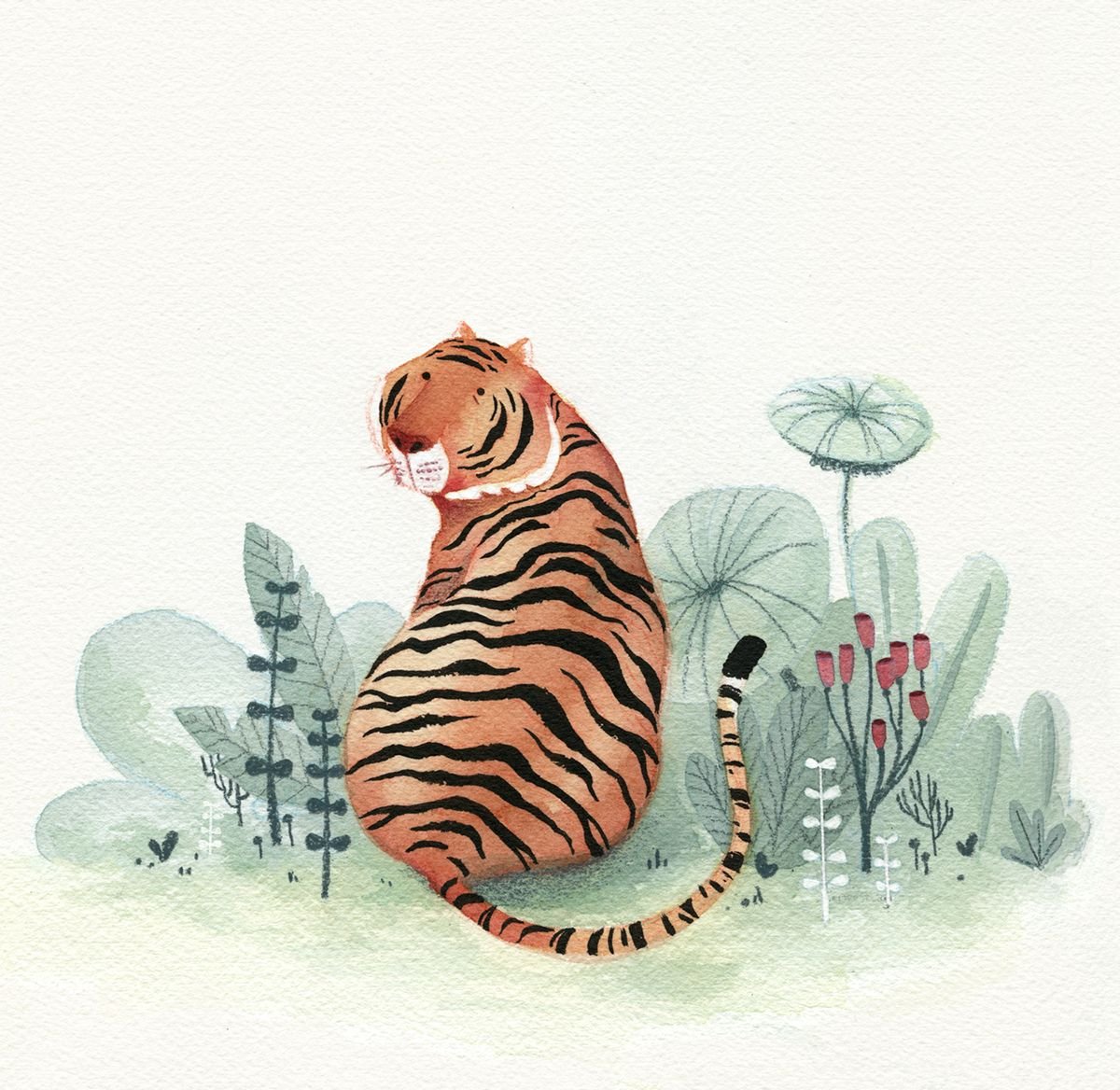 Тигр иллюстрация акварель