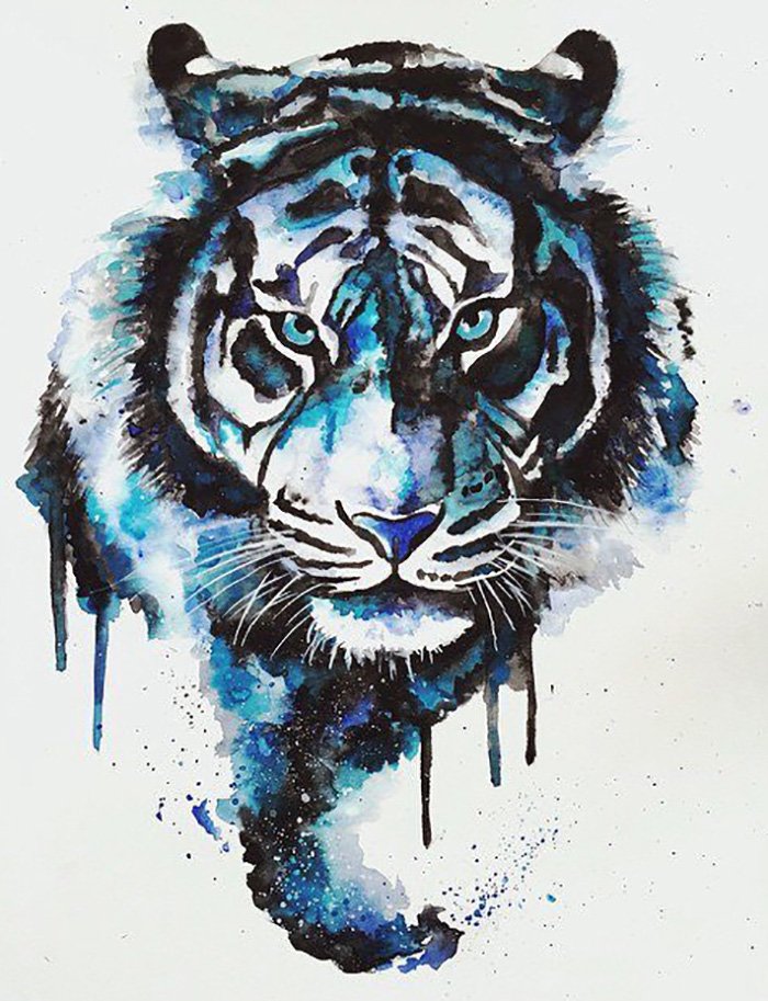 ![Тигр нарисованный акварелью]()