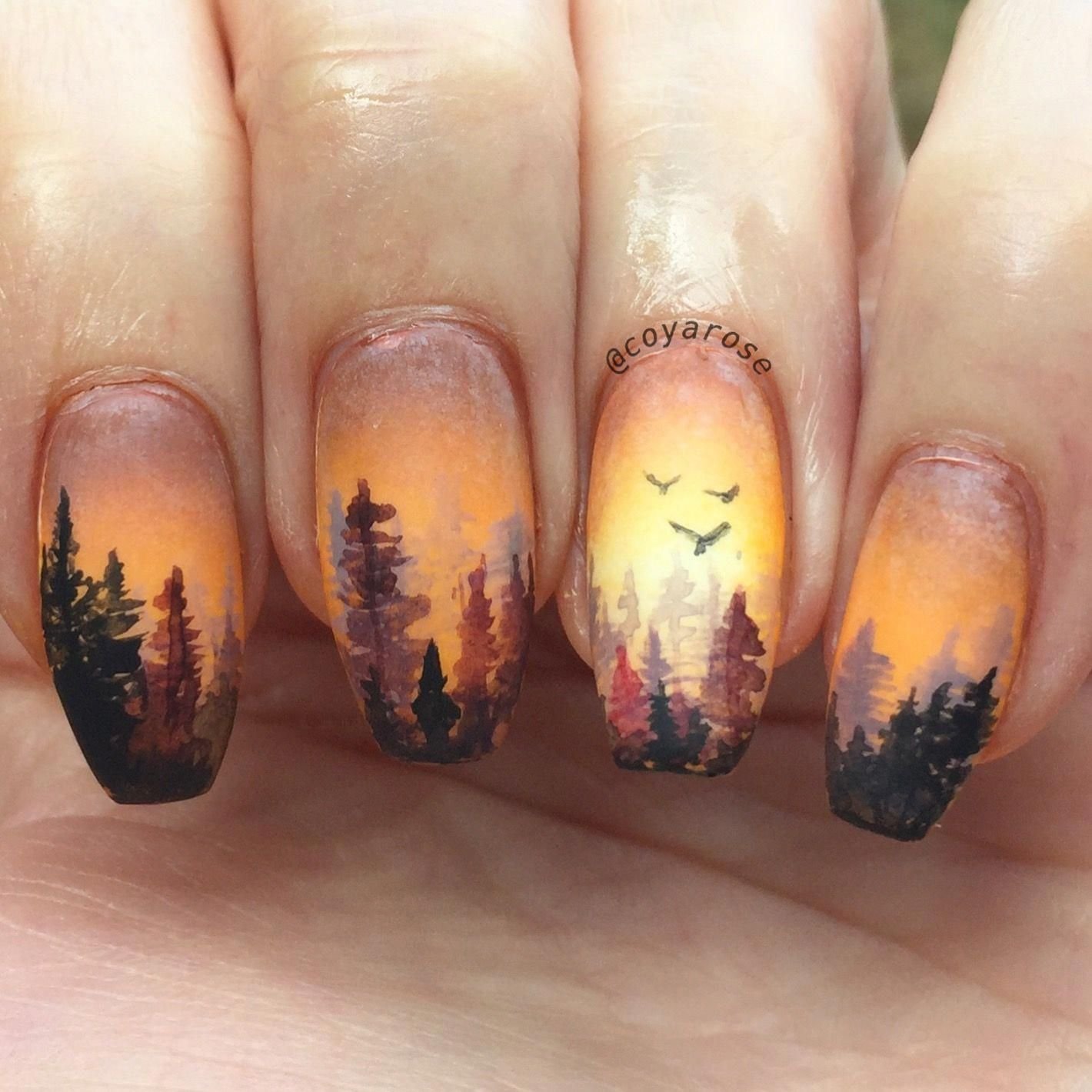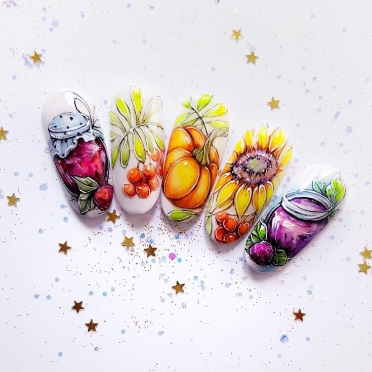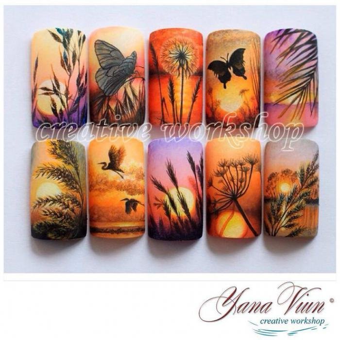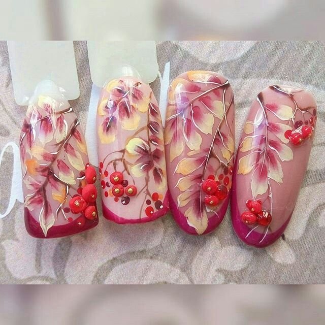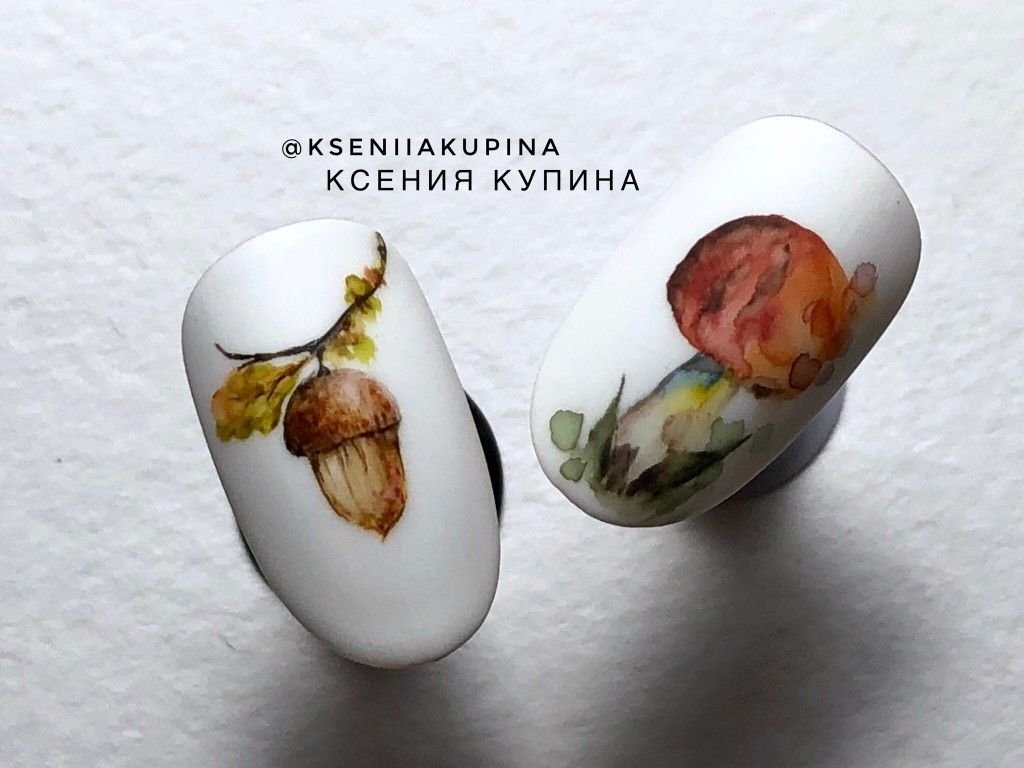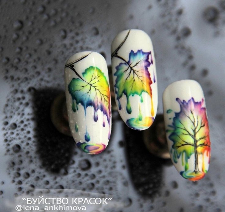 Рисунки на ногтях акварелью в осенней тематике позволяют создать неповторимый и стильный образ. Они отличаются своей нежностью и легкостью выполнения, что делает их очень популярными среди любителей маникюра. В осенних рисунках акварелью часто используются яркие оттенки желтого, оранжевого и коричневого цветов, а также различные элементы природы, такие как листья, шишки или птицы. Такой маникюр подчеркнет вашу индивидуальность и придаст ногтям оригинальности и элегантности. Также можно использовать акварельные краски для создания декоративных узоров, полосок или абстрактных элементов. Результат будет впечатляющим и сделает ваш образ стильным и модным.
