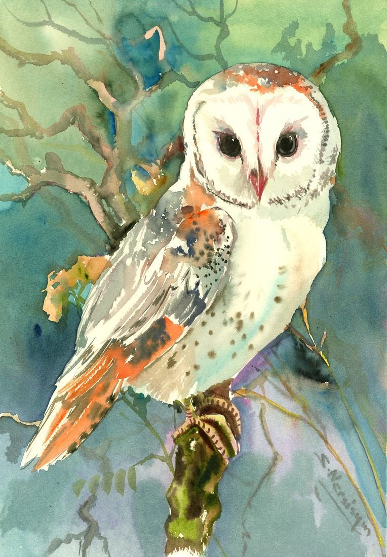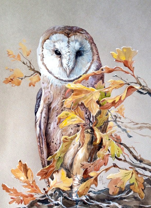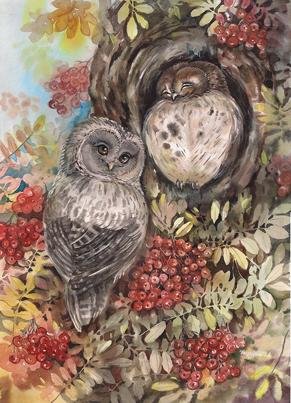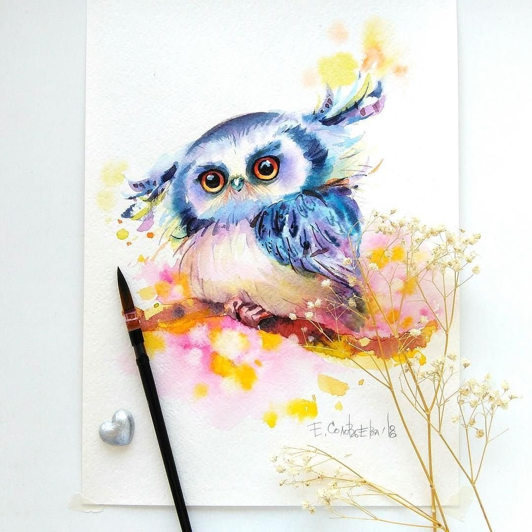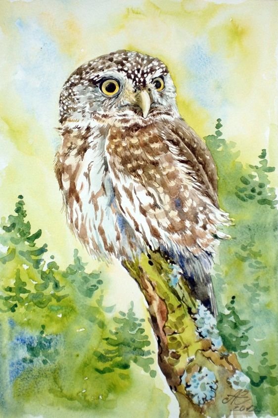 Сова на дереве - великолепный рисунок, выполненный акварелью. Это произведение искусства удивляет своей нежностью и тонкостью передачи деталей. Очаровательная сова, сидящая на ветке, выглядит так реалистично, что кажется, будто можно потрогать ее пушистые перья. Благодаря использованию акварельных красок, художник создал игру светотени и мягкие переходы цветов, что придает картине особую глубину и объемность. Рисунок "Сова на дереве" уносит зрителя в мир природы, полный загадочности и спокойствия, а его яркие акварельные краски оживляют каждую деталь этого прекрасного произведения искусства.