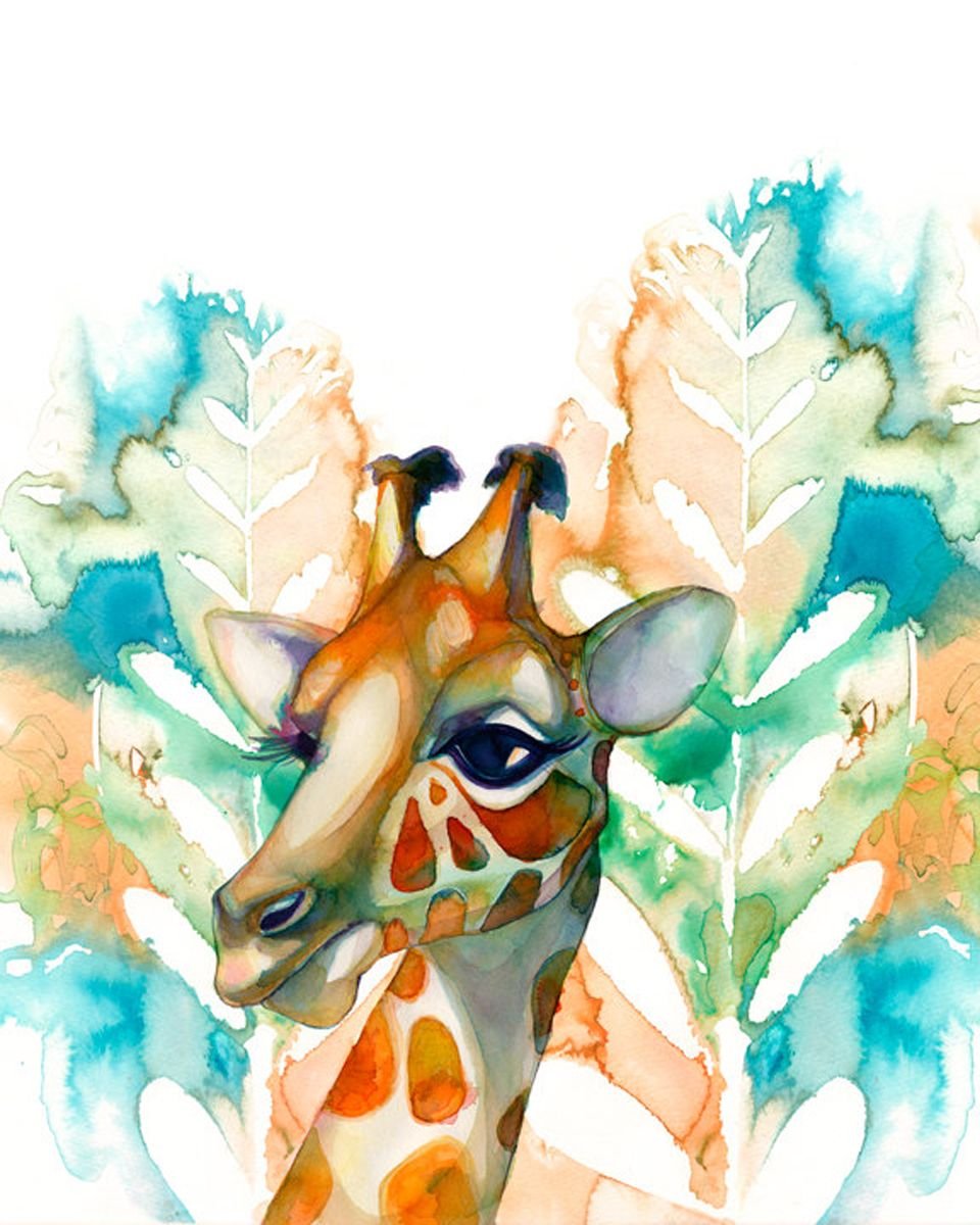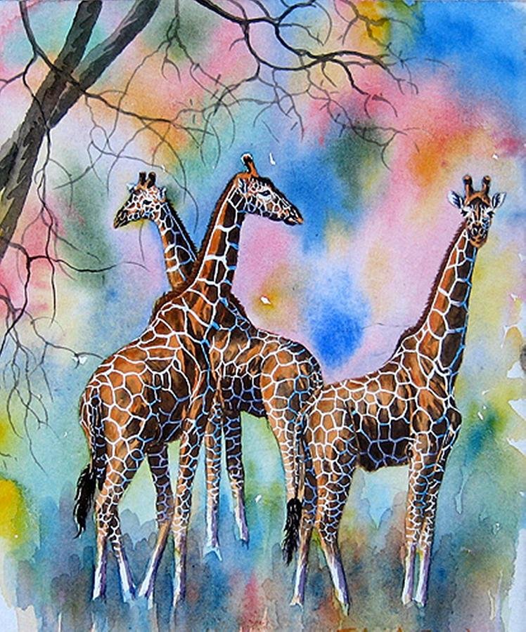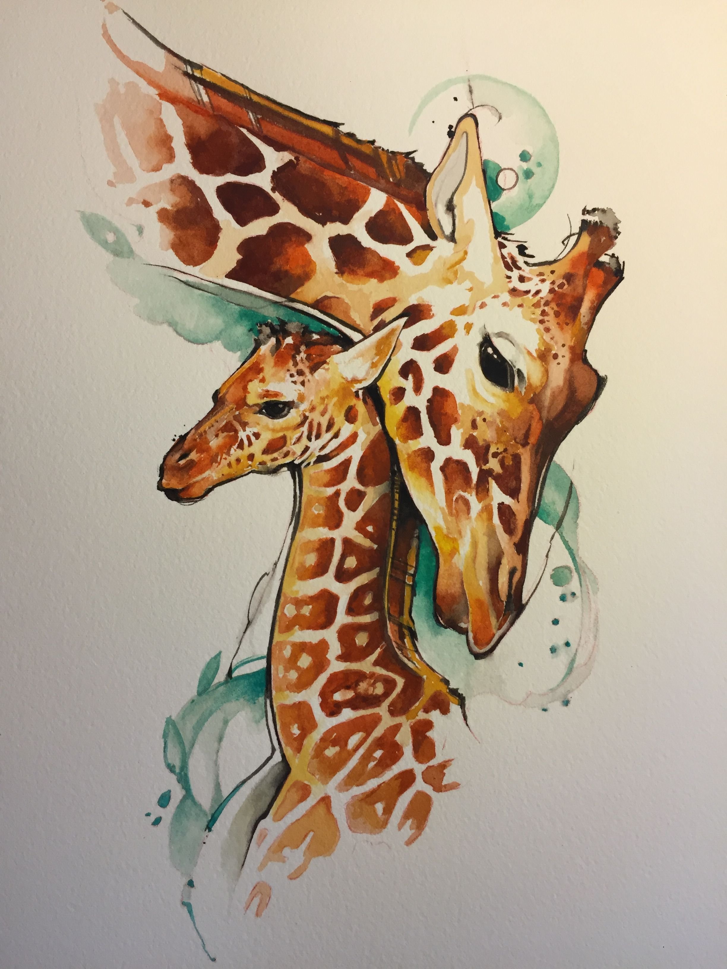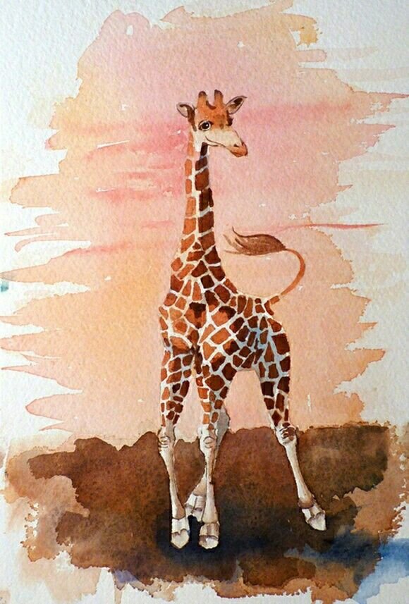 Очаровательный рисунок жирафа, выполненный в технике акварели, привлекает внимание своей нежной и яркой гаммой цветов. Образ жирафа передан с изяществом и пластичностью, что придает ему особую элегантность и изящество. Каждая деталь рисунка тщательно проработана, отражая мощь и грациозность этого величественного животного. Потрясающие оттенки бежевого и коричневого создают ощущение текстуры кожи, а водные переходы цветов добавляют глубины и объема. Этот рисунок станет украшением любого интерьера или прекрасным подарком для любителей животных и искусства.