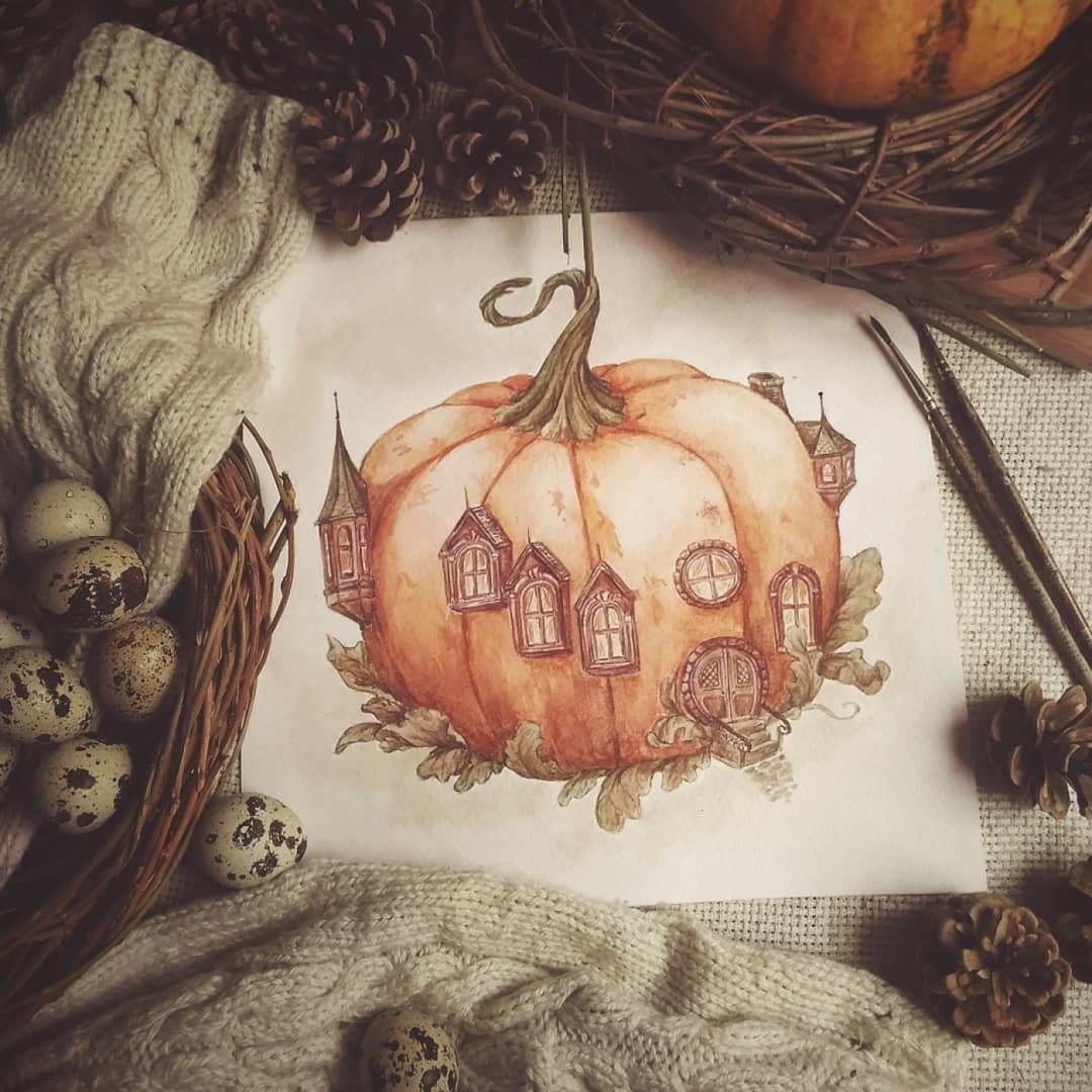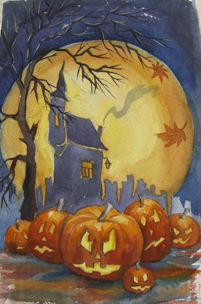 Хэллоуинские картины акварелью