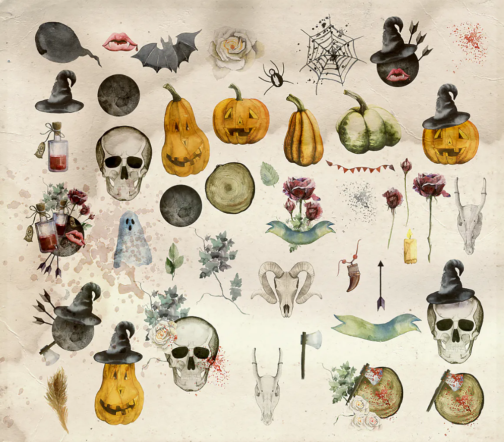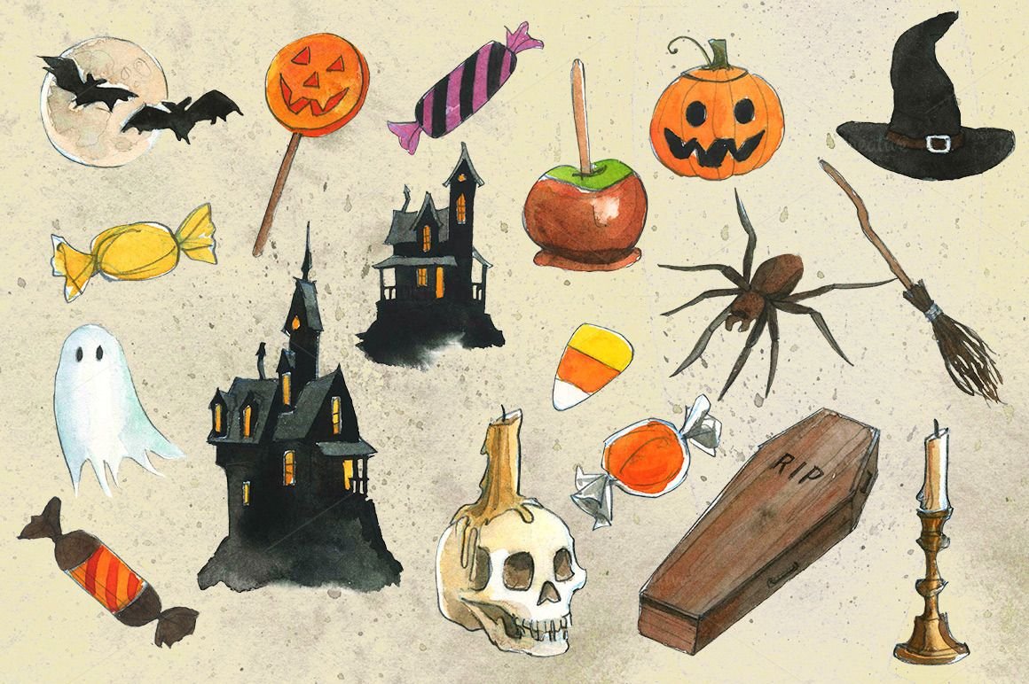 ![Хэллоуин акварель]()