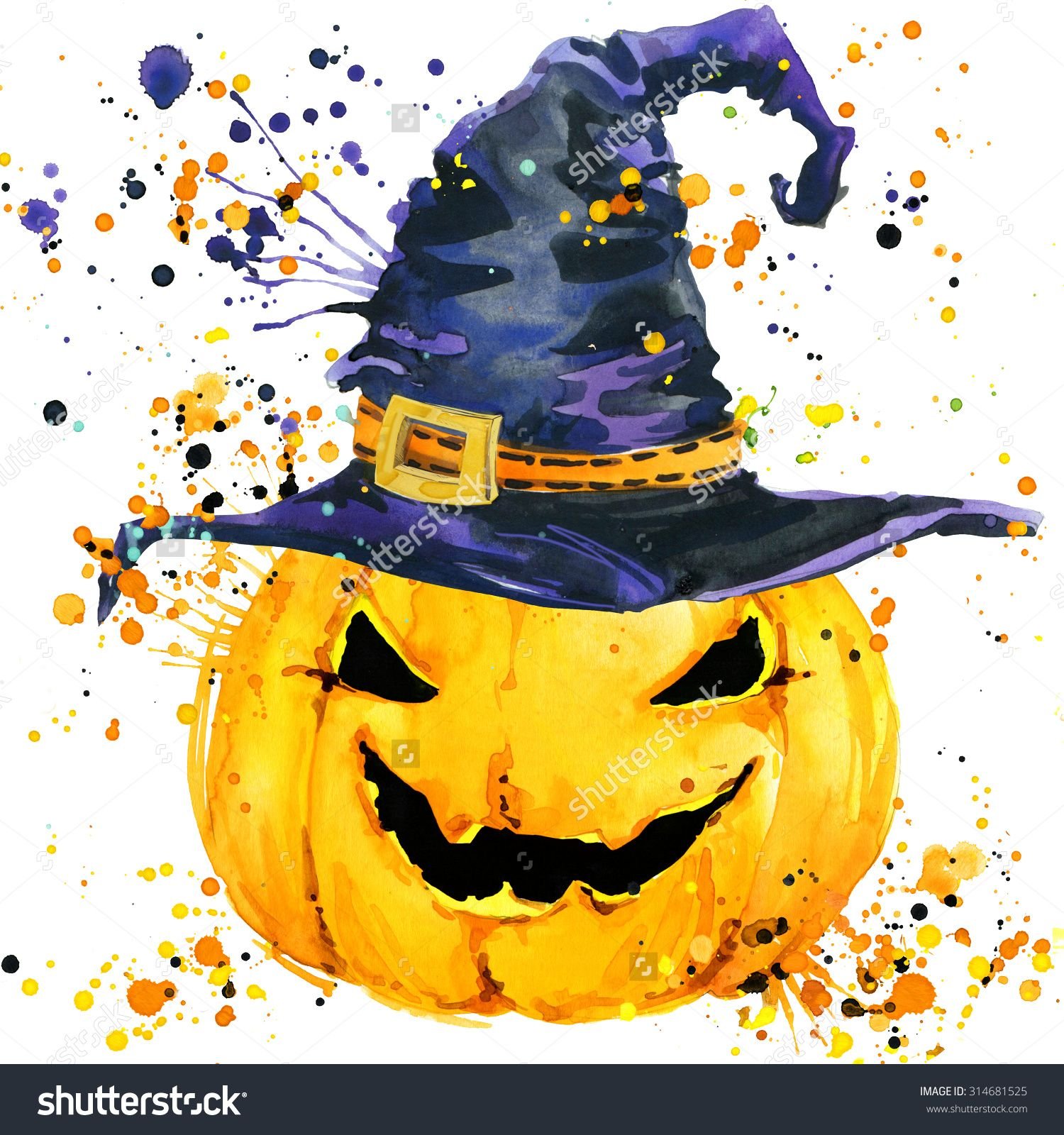 ![Тыква Хэллоуин акварель]()