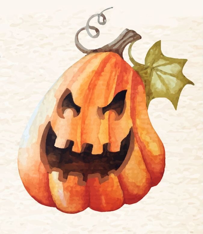 ![Хэллоуинская тыква акварелью]()