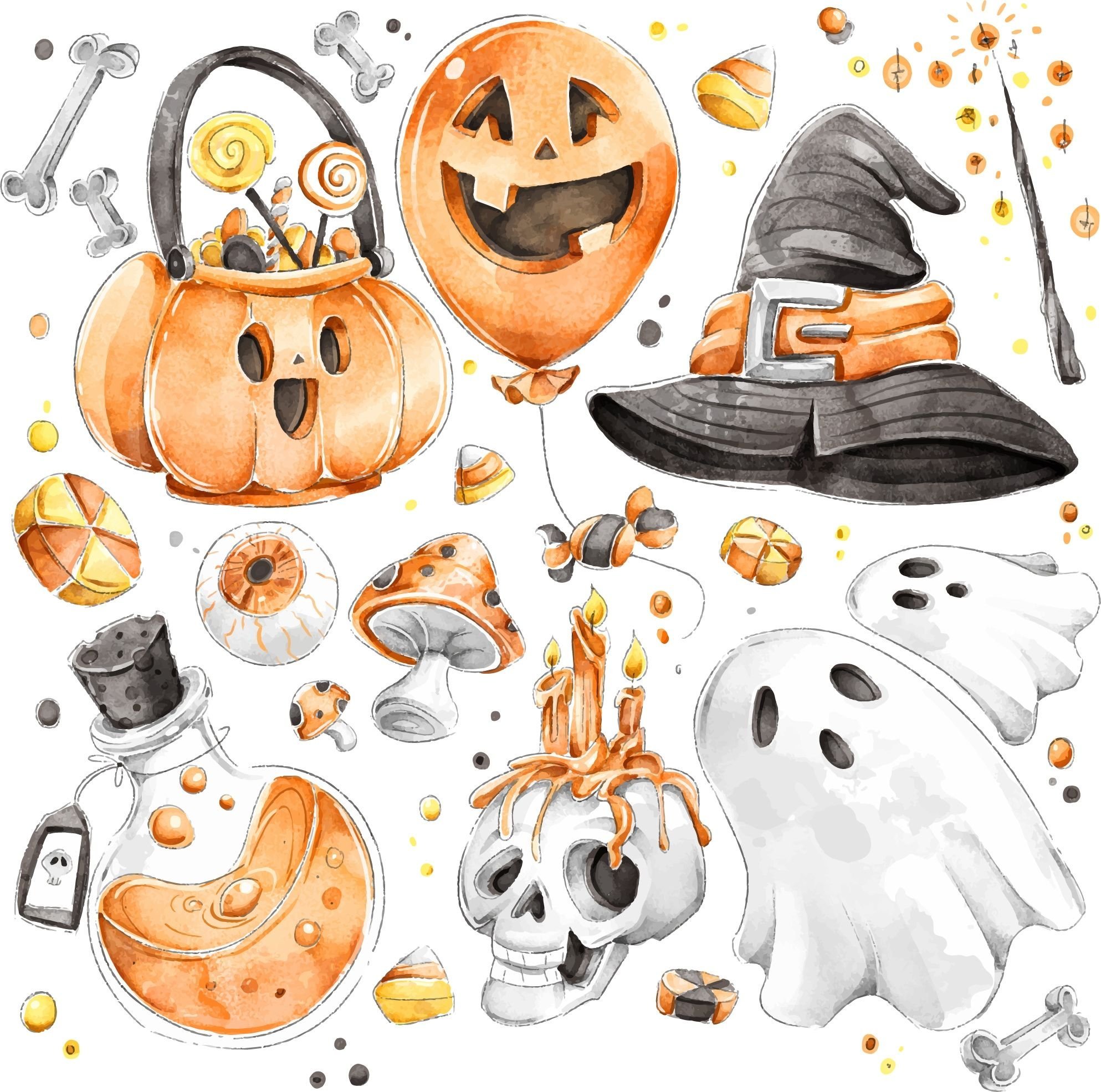 Акварельные Стикеры Хэллоуин