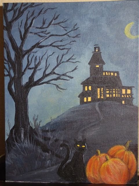 ![Картина на Хэллоуин красками]()