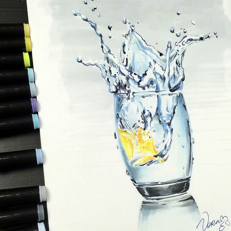 ![Стакан с водой акварелью]()