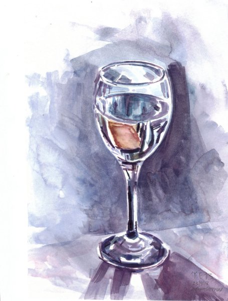 Бокал с водой акварель
