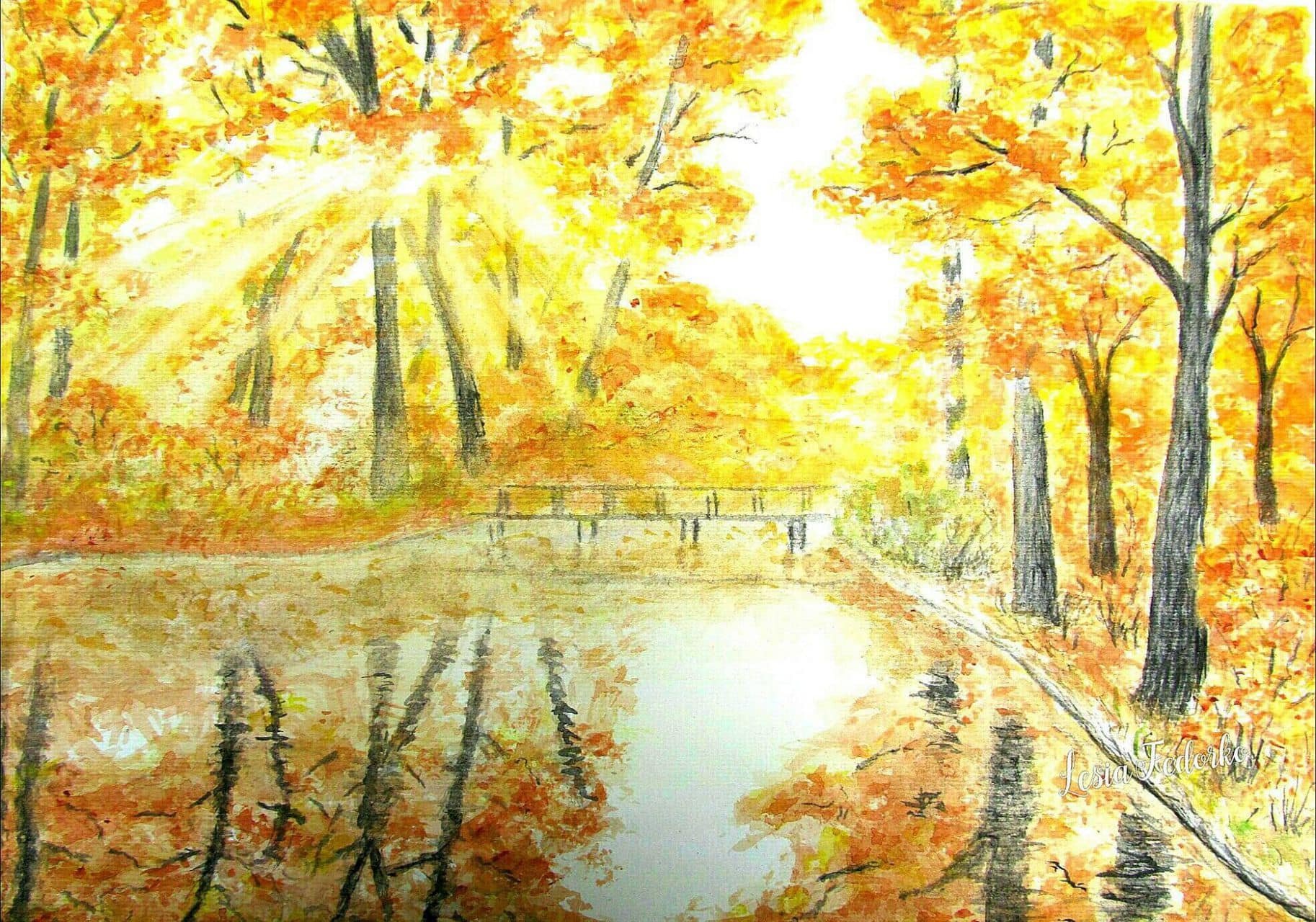 Осенние рисунки акварелью