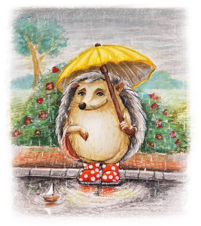 ![Ежик под зонтом]()