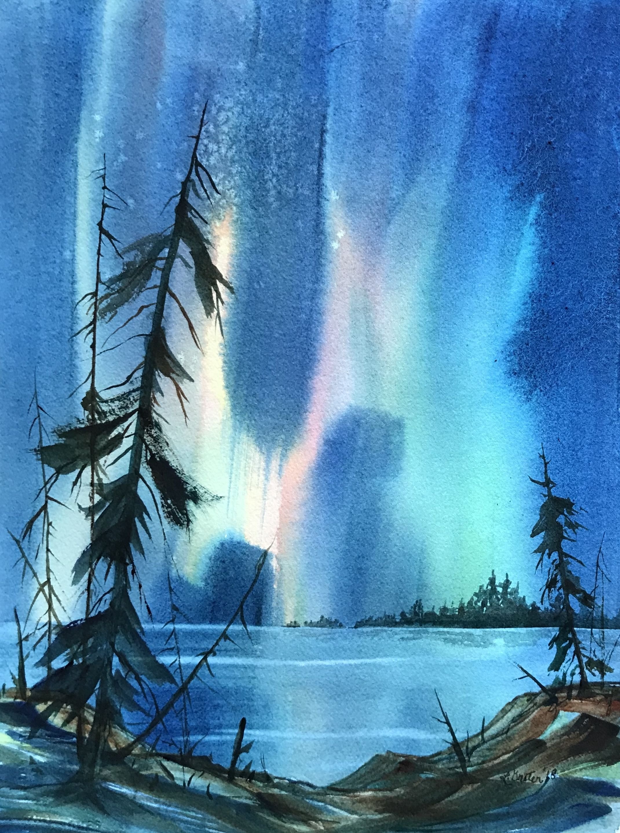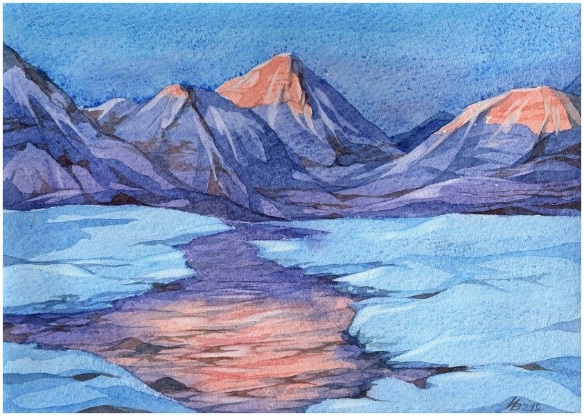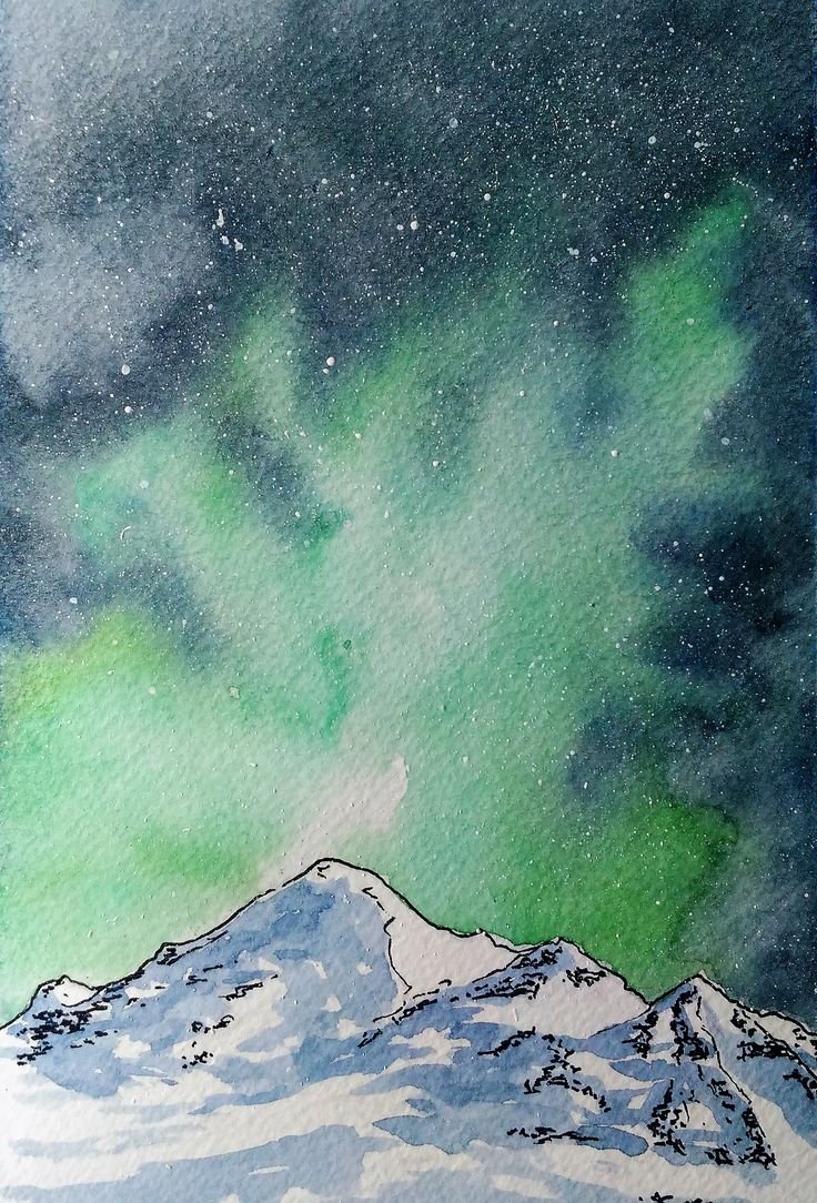 Художественная акварельная техника позволяет создать неповторимый рисунок, олицетворяющий северные просторы. В своем произведении художник использует мягкие и прозрачные оттенки синего, фиолетового и белого, передающие атмосферу холодного и благородного северного ландшафта. Разнообразие текстур и тонов помогает передать детали ледяных гор и замерзших водоемов, а также искрящуюся на солнце снежную шапку сосновых деревьев. Каждая капля акварельной краски на бумаге становится частью уникального и живого образа, который погружает зрителя в мир северной природы со всей ее красотой и величием. Одним взглядом на этот рисунок можно почувствовать ледяной ветер, услышать тихое шелестение снега под ногами и почувствовать покой и умиротворение, которые дарит с собой северное небо.