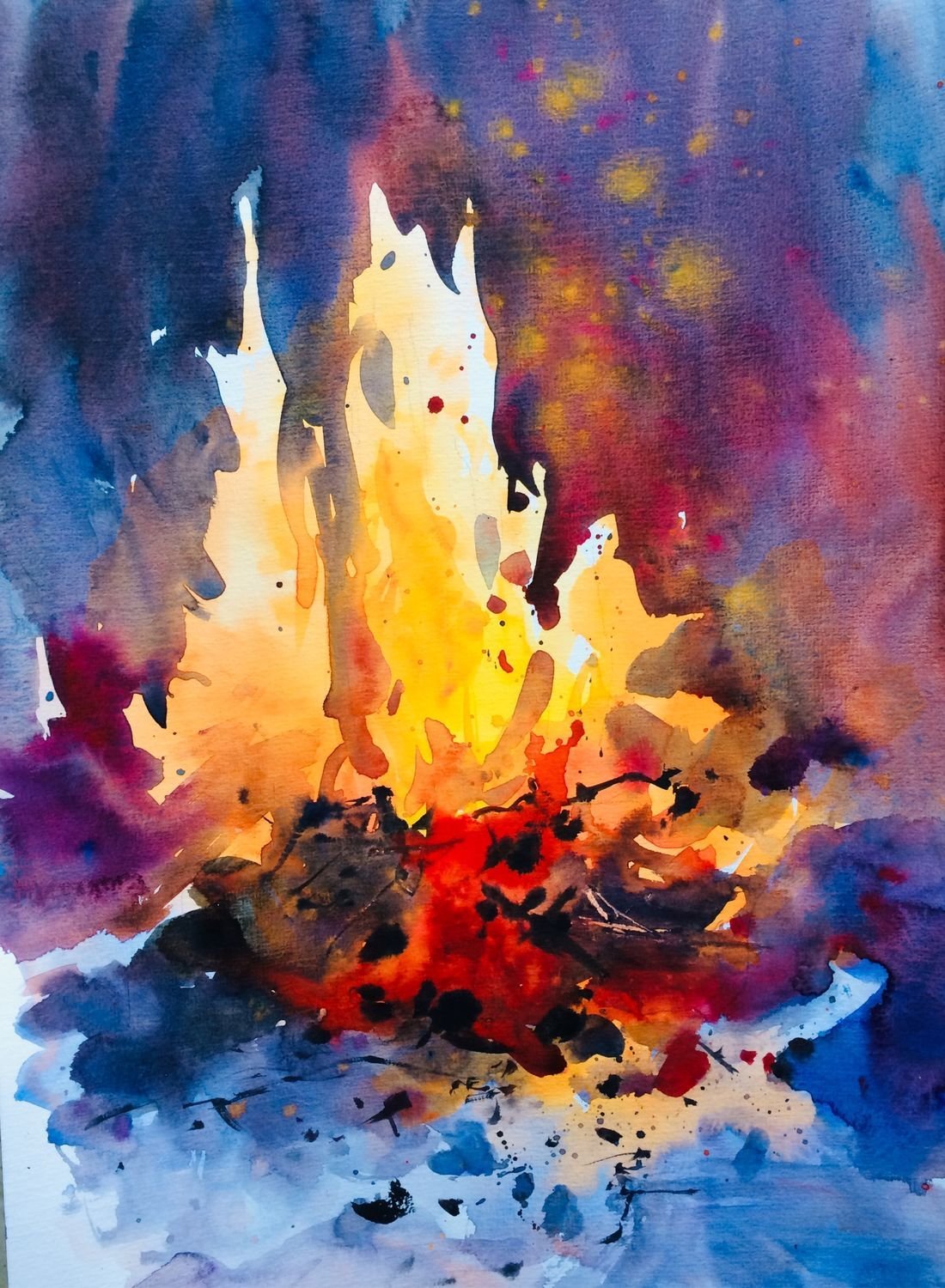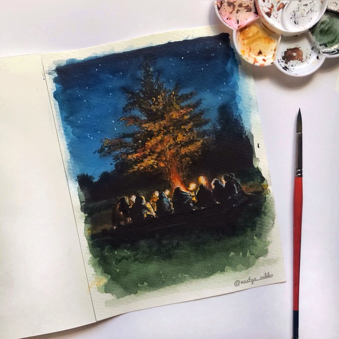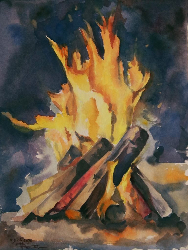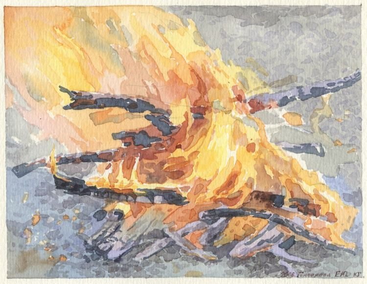 Рисунок костра акварелью - это искусство, которое приносит ощущение тепла и уюта. Живые цвета и мягкие переходы оттенков создают реалистичное изображение пламени, передавая его яркость и движение. Детали дров и дыма добавляют глубину и объемность к рисунку, придают ему реальности. Такой рисунок может быть прекрасным украшением для интерьера или вдохновением для любителей путешествий и походов на природу. Он также может вызывать теплые воспоминания о семейных вечерах у костра или о романтических встречах под звездным небом. Рисунок костра акварелью - это нежное и эмоциональное искусство, которое способно передать атмосферу и чувства, связанные с огнем и природой.