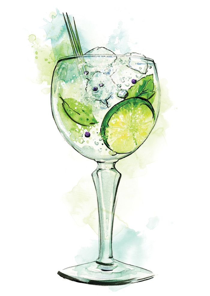 ![Коктейль скетч акварель]()