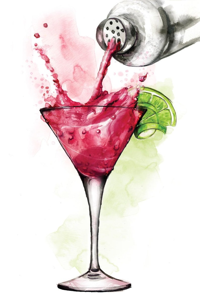 ![Коктейль акварелью картина]()