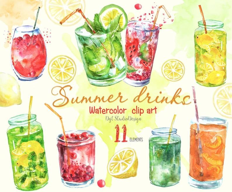 ![Напитки и коктейли акварель]()