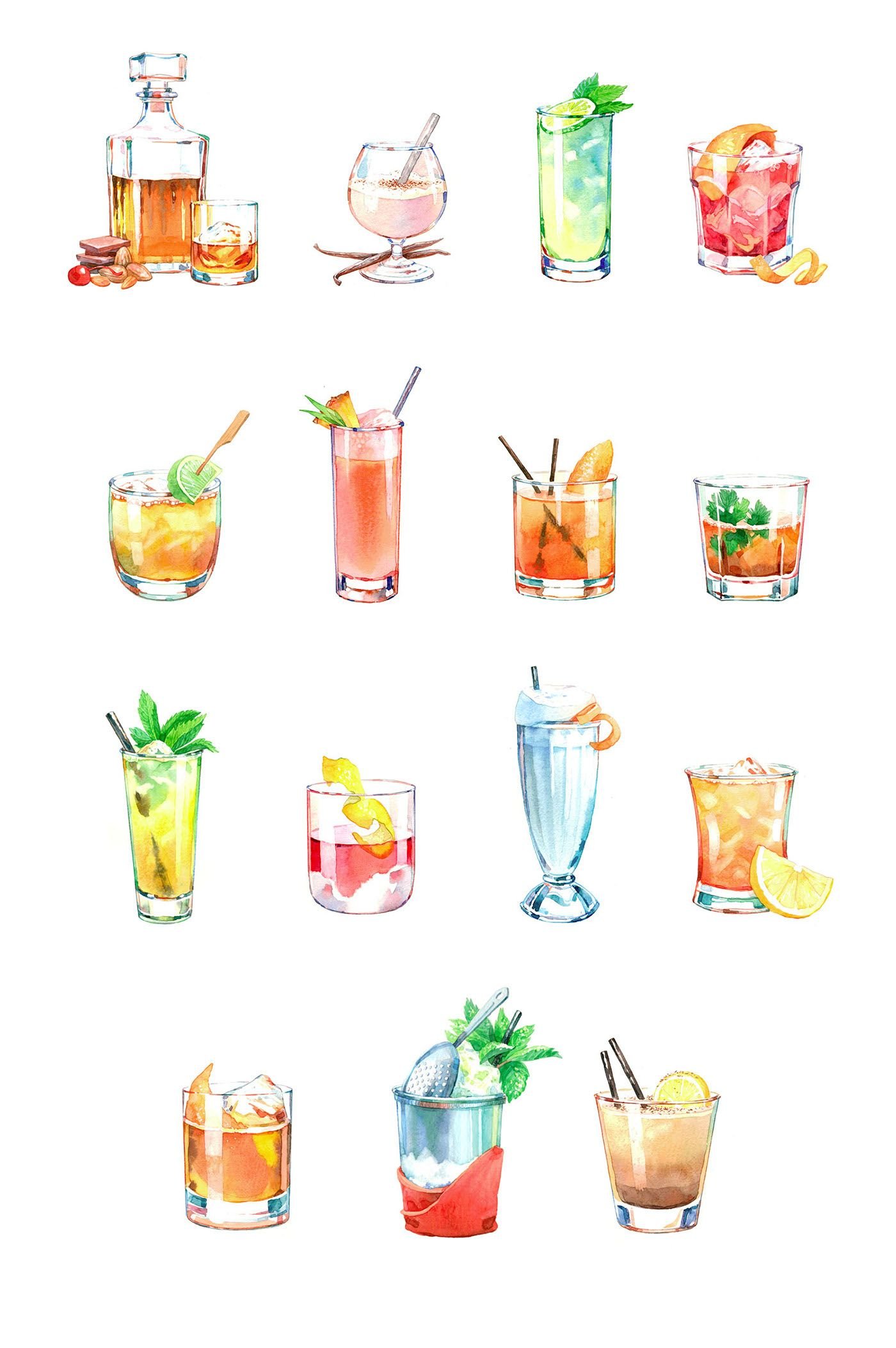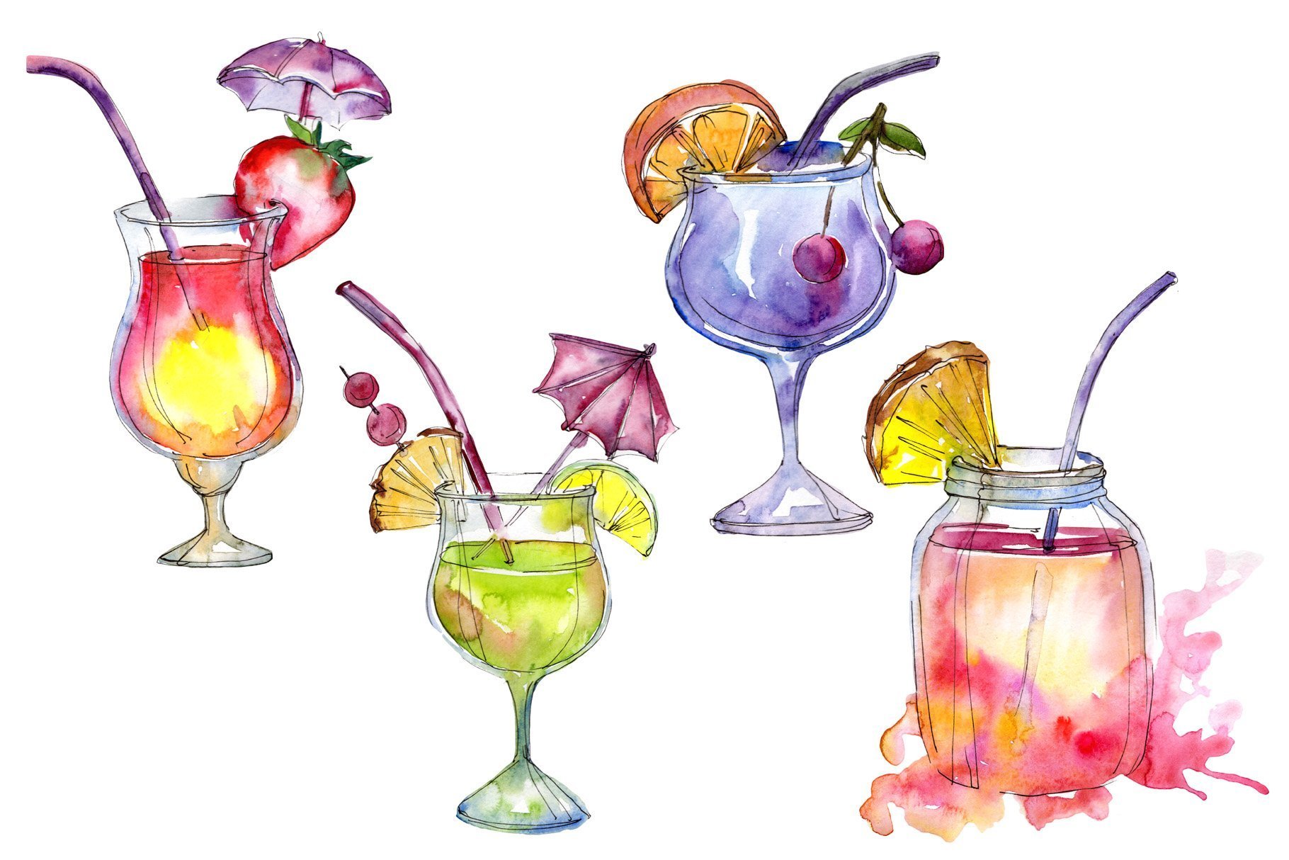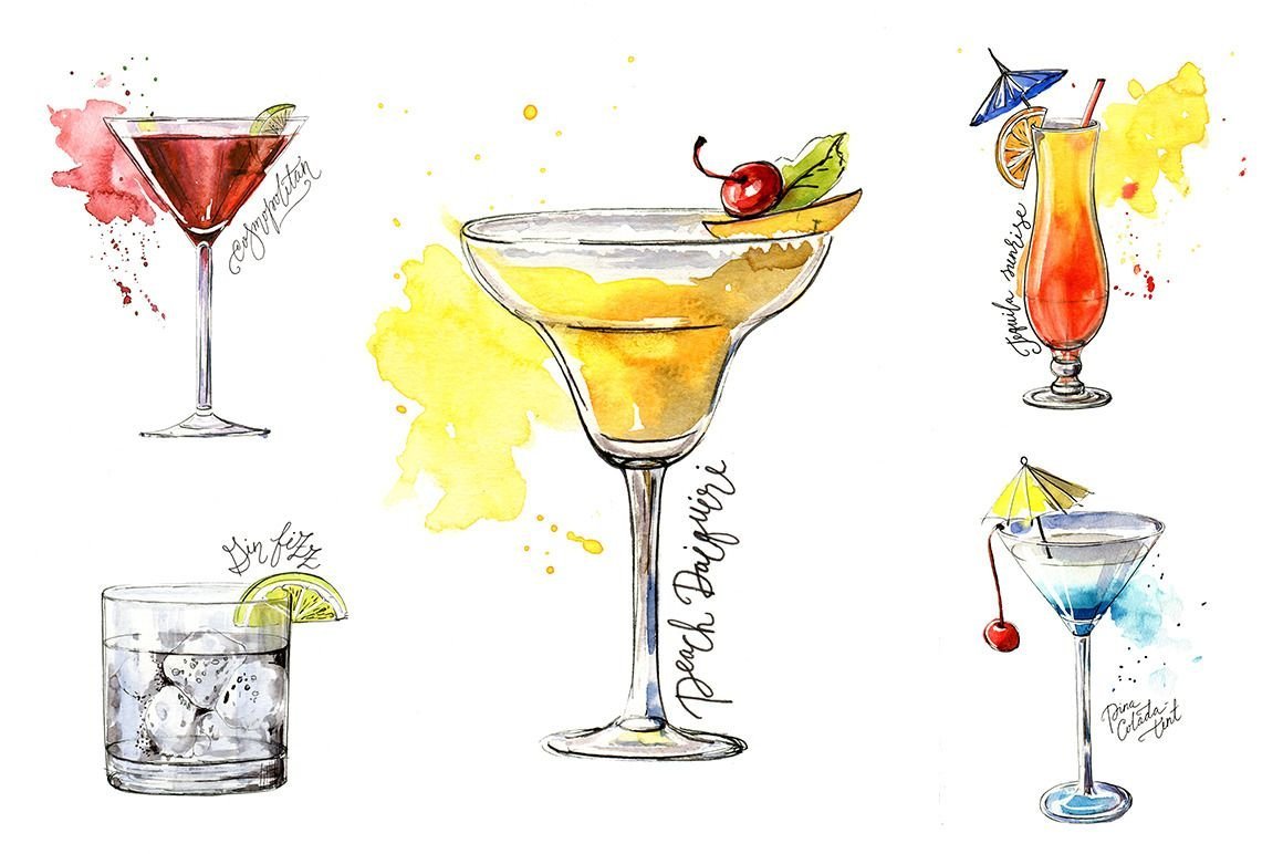 ![Акварельные скетчи коктейли]()