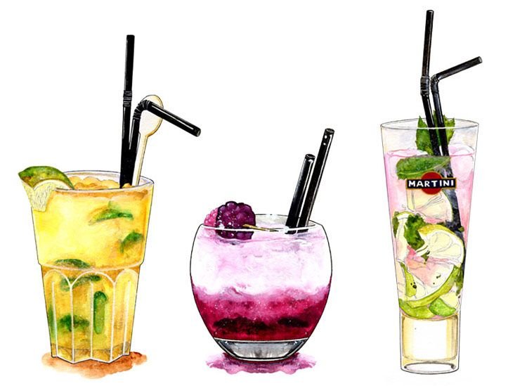 Акварельные скетчи коктейли