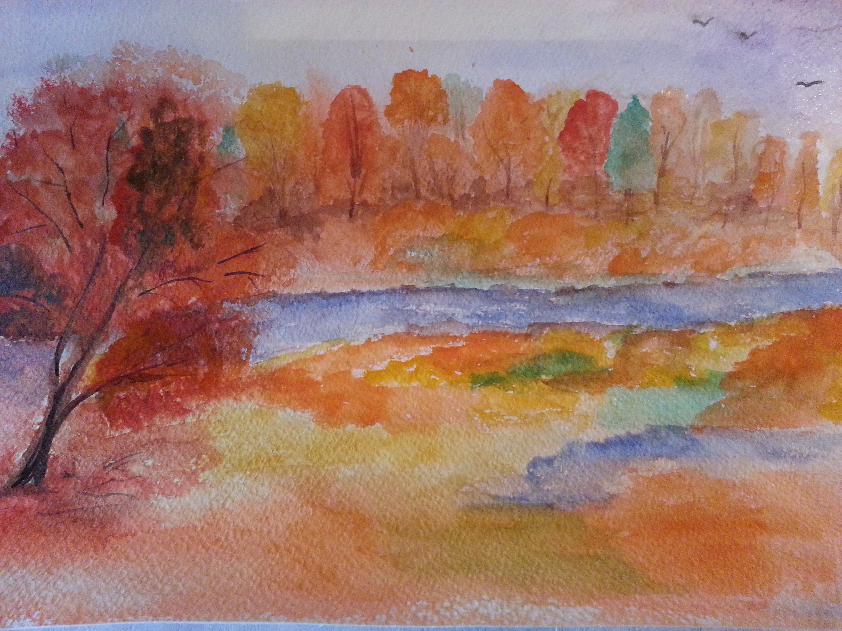 Рисование осеннего пейзажа акварелью