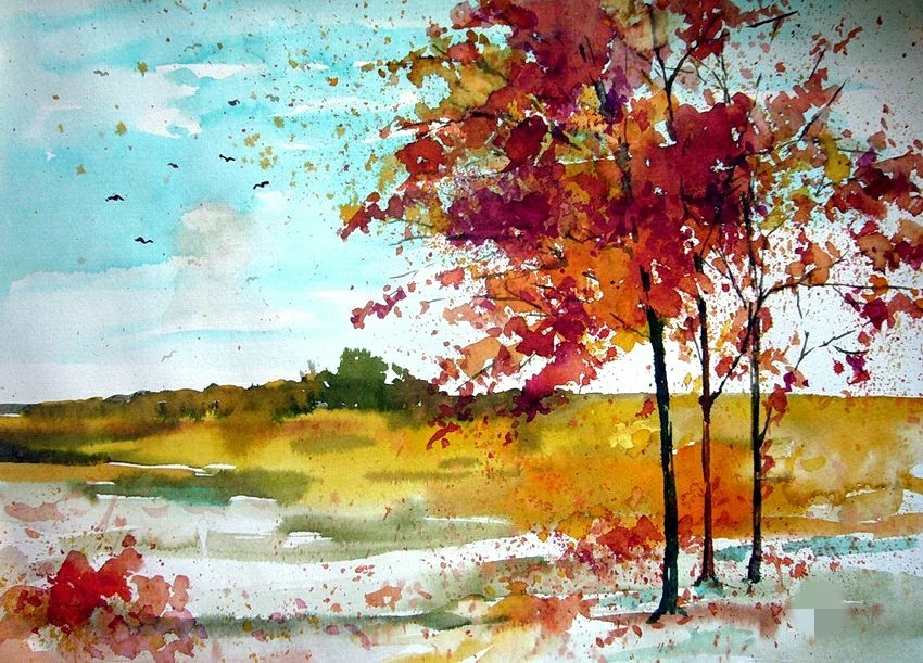 Рисование акварелью осень